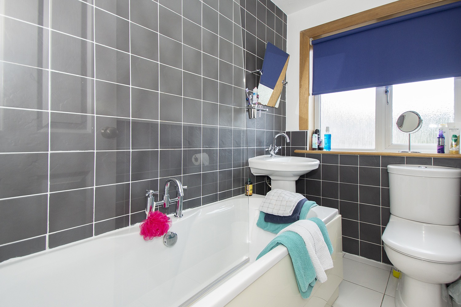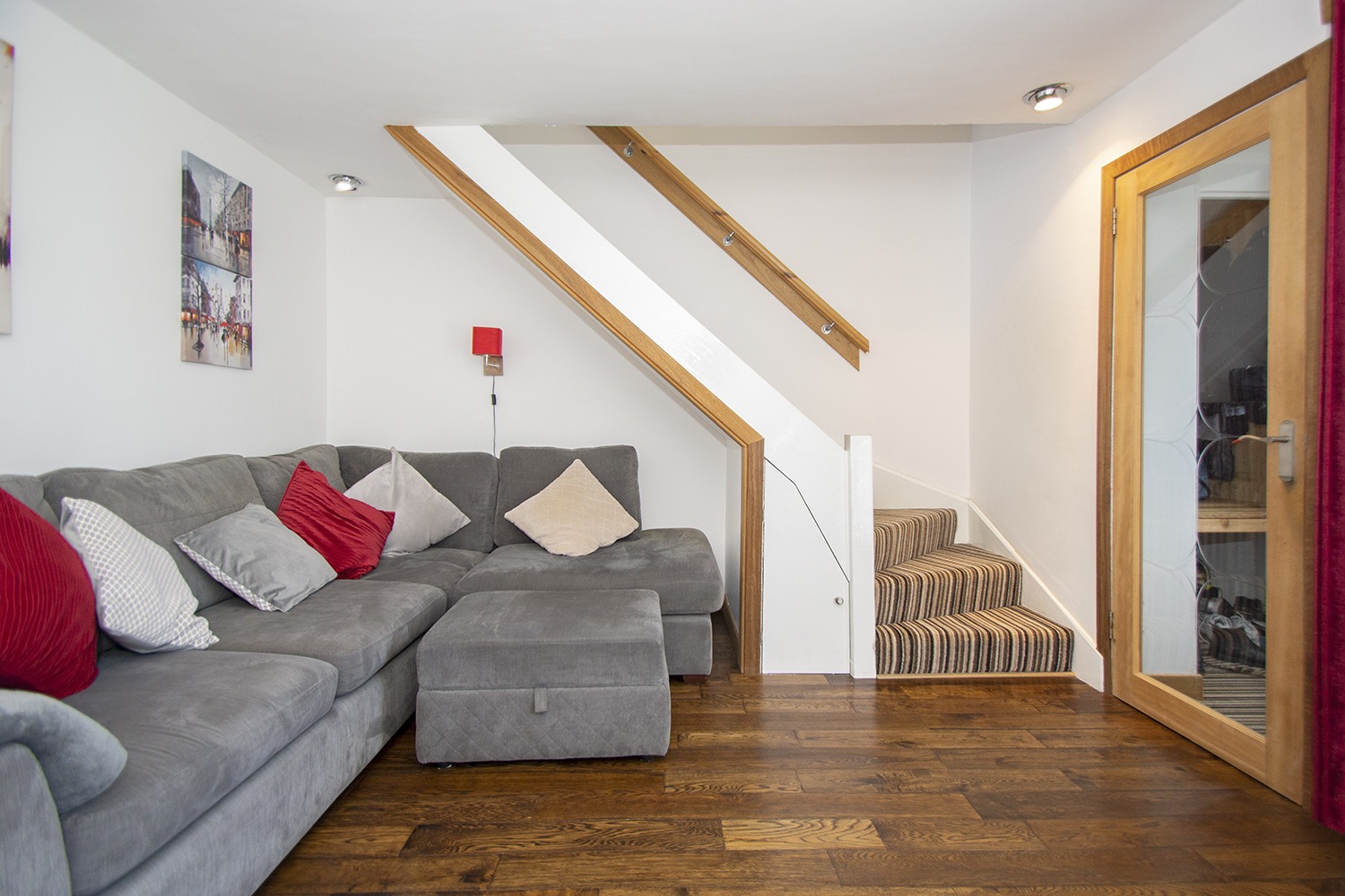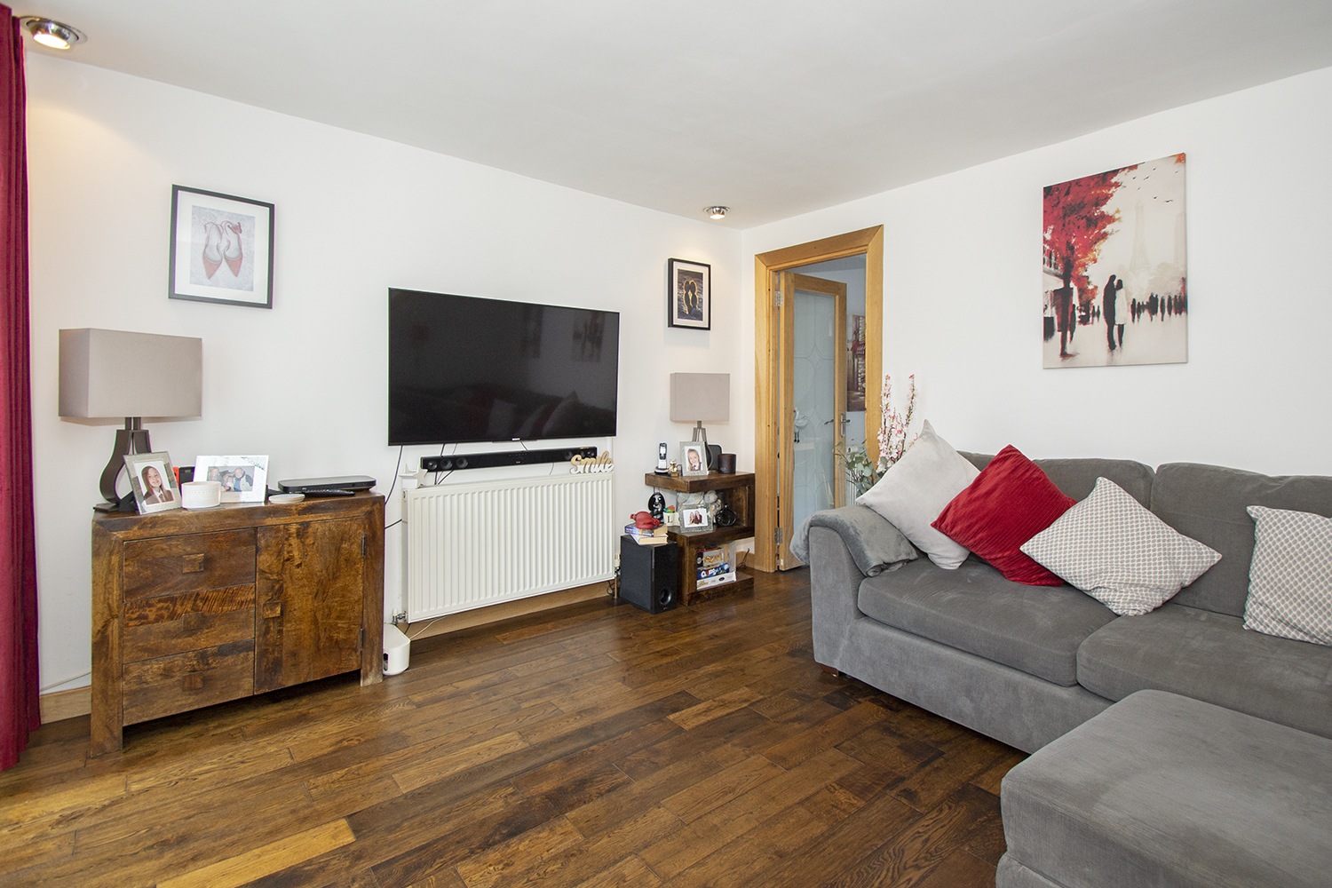 This stunning family home is immaculately presented throughout and is formed over two levels with the lower level comprising entrance vestibule which leads to the front facing lounge, with modern décor and solid wood flooring. Rear facing fitted kitchen/diner which houses an ample range of base and wall units, with complementary worktops and tiled splashback areas, integrated appliances. Please note cooker hood and dishwasher are not operational. The upper-level accommodation houses the main bedroom with modern décor and fitted cupboard. A further good sized bedroom and contemporary three-piece family bathroom with wc, wash hand basin with and bath with electric shower over.