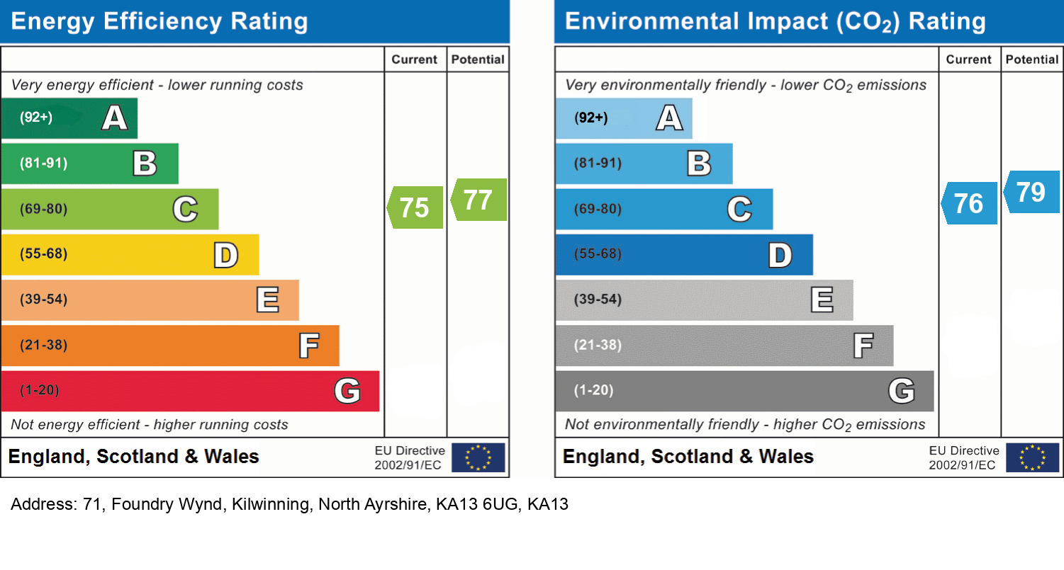 Situated in the Whitehurst Park area of Kilwinning, this property offers easy access to a range of local amenities, including excellent schools, shopping facilities, and supermarkets. The area benefits from superb transport links and is just a short drive from Irvine’s exceptional recreational offerings, including quality dining, a picturesque harbour, stunning beaches, boutique shops, and a variety of sporting facilities.