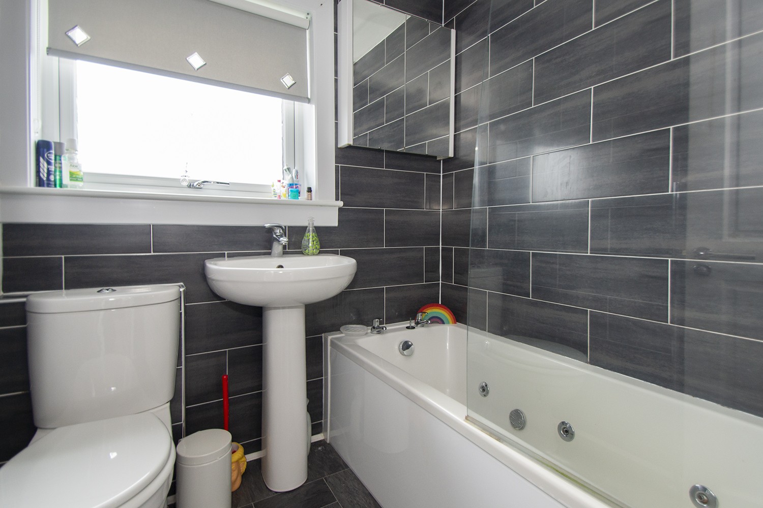This immaculately presented family home is laid out over two levels with the lower level comprising entrance hallway; spacious lounge with twin aspect window formation which allows and abundance of natural light to flow through; modern fitted kitchen housing an ample range of base and wall units with complementary worktops and splash-back areas, integrated electric hob, oven and extractor hood, breakfasting area. The upper level accommodation houses the main bedroom with fitted wardrobes; a further two bedroom and three piece family bathroom comprising wc, wash hand basin and bath with overhead electric shower.