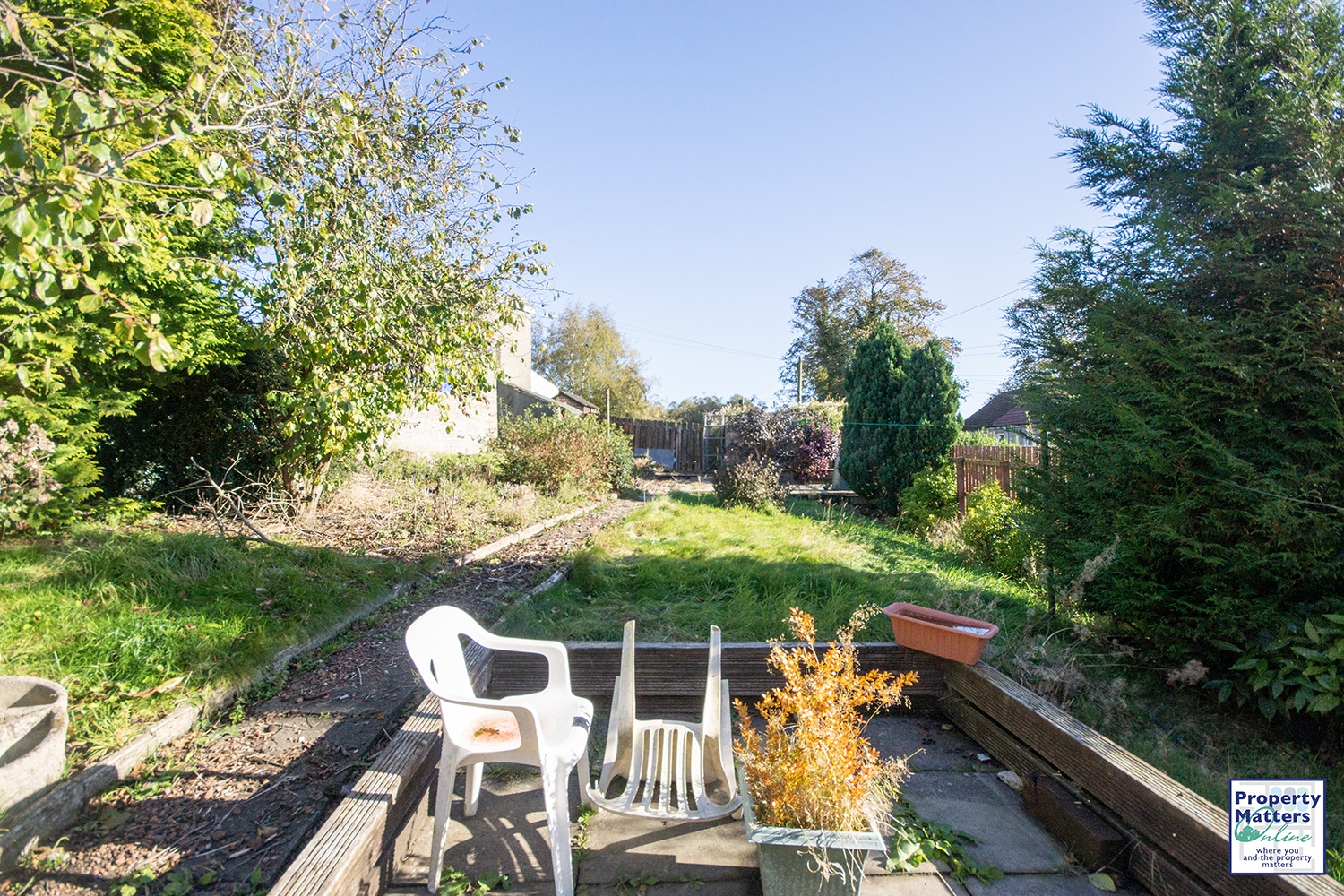 Small hard landscaped garden area to the front. To the rear there Is a fully enclosed good sied garden area with patio and chipped pathway. Lawn area with borders with established shrubs. There is also a small outhouse.