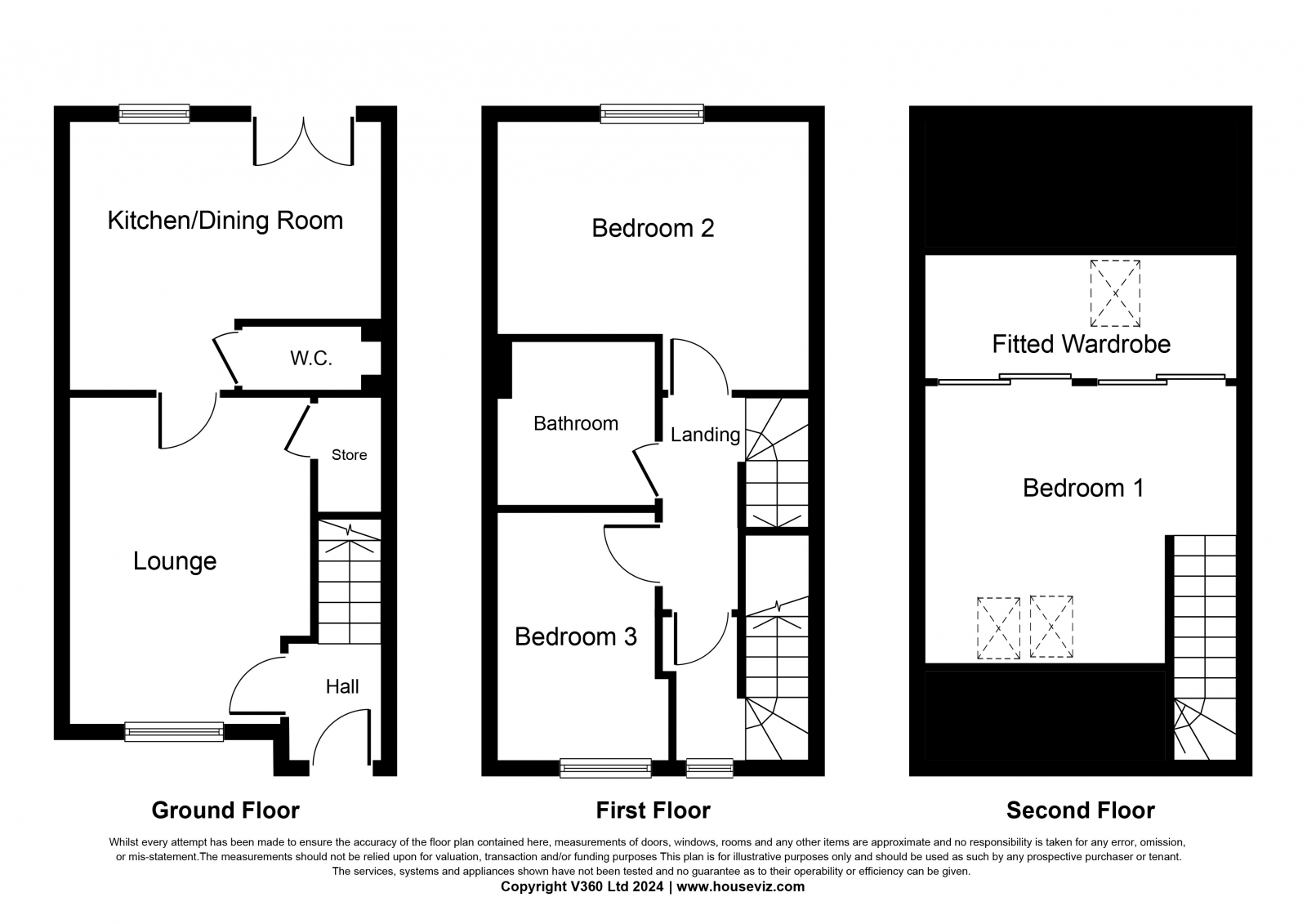 This flexible accommodation is formed over three levels with the ground floor comprising welcoming entrance hallway which gives access to the front facing lounge which the current owners currently use as a dining/family area. WC. Modern dining kitchen which houses an ample range of base and wall units with complementary worktops and upstands, and integrated appliances which include washing machine, electric oven, 5 burner gas hob and extractor hood. The first-floor accommodation houses bedroom two and three, however with the accommodation being so versatile the current owners currently use bedroom two as a lounge. Contemporary three-piece bathroom comprising wc, wash hand basin and bath with overhead thermostatic shower. The second-floor accommodation houses the well-proportioned master bedroom with bespoke wardrobes, and Velux windows which allow an abundance of natural light to flow through.