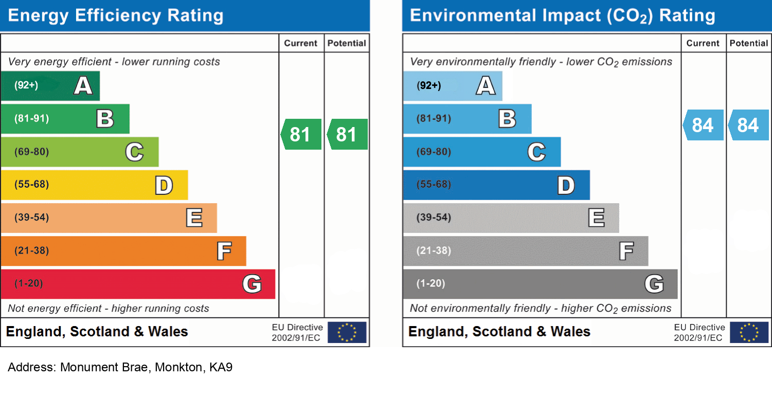Monkton offers a range of local amenities, while the nearby town of Prestwick provides a wider selection of shops, supermarkets, transport links, and leisure facilities. The M77 motorway is easily accessible, offering convenient connections to Kilmarnock, Glasgow, and beyond. Prestwick train station provides regular services to both Glasgow and Ayr, making this an ideal location for commuters.