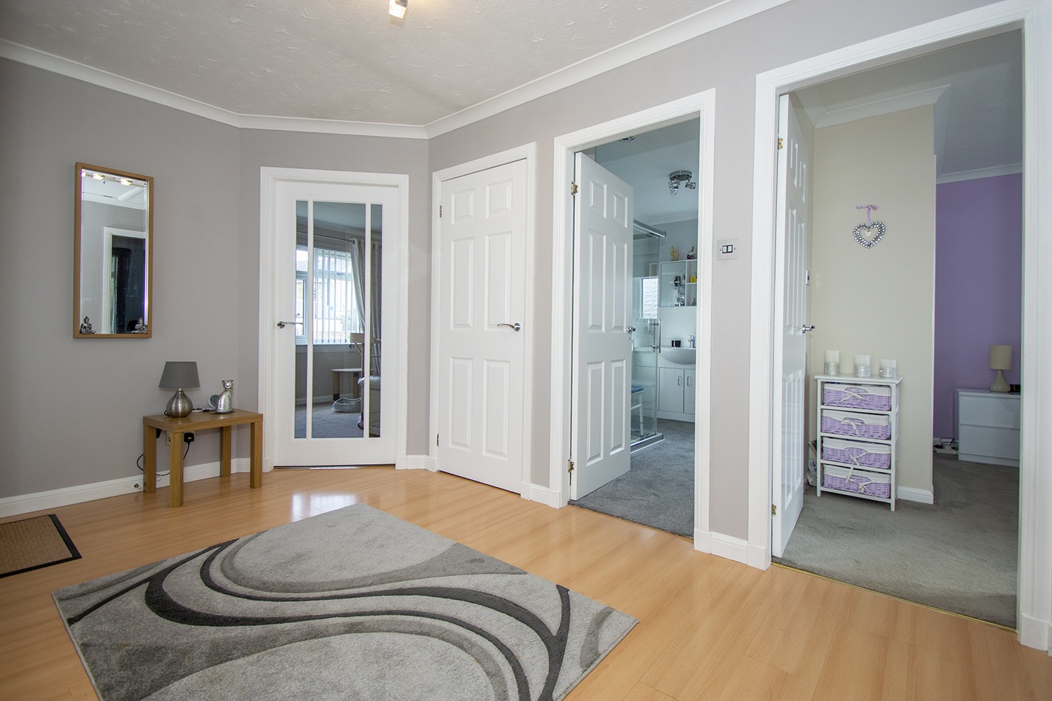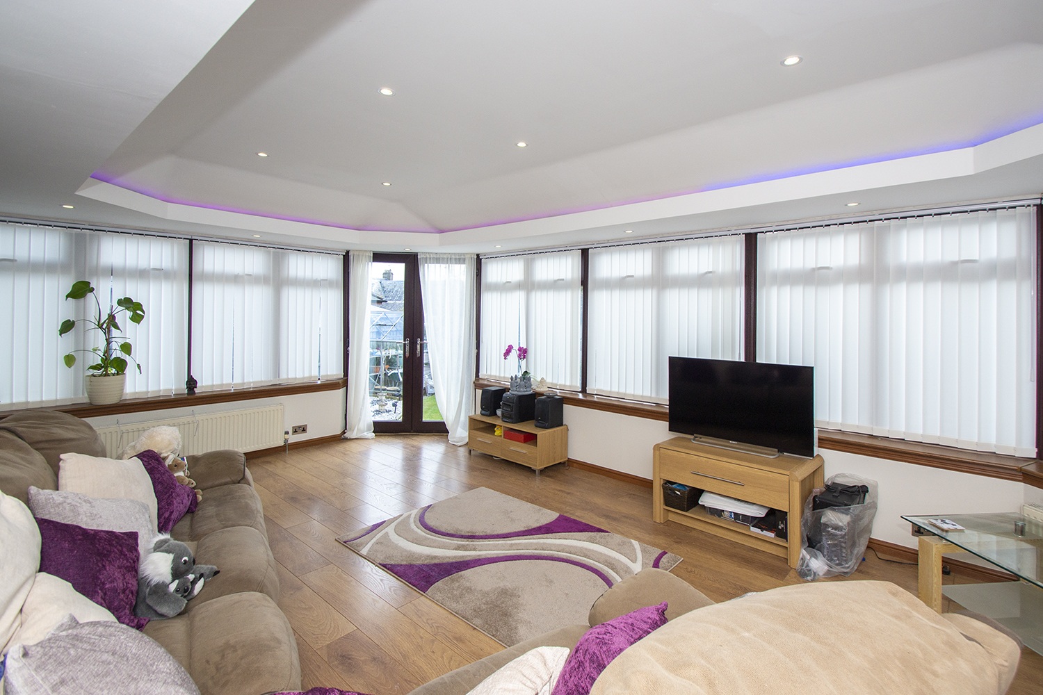 The accommodation comprises of hallway, front facing spacious lounge with twin aspect window formation which allows an abundance of natural light to flow through, family shower room comprising of w.c, wash hand basin and glass shower cubical and door leading to the master bedroom with built in mirror wardrobes, study with double glazed patio doors leading into the large sunroom, modern kitchen comprising of wall and base units with complimentary worktops, integrated electric hob and oven, the kitchen also leads to the sun room, bedroom two which is front facing and good sized double bedroom with fitted wardrobe.
