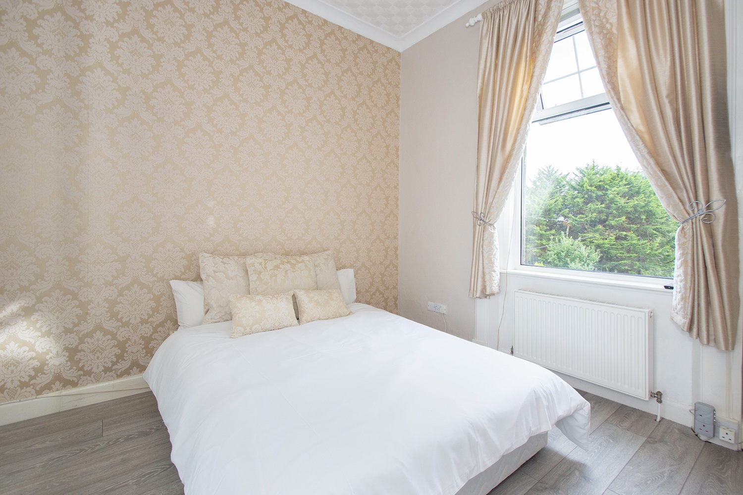 This accommodation comprises of an entrance vestibule, reception hallway leading to well-proportioned front facing lounge, front facing bedroom with fitted wardrobes, three piece family bathroom comprising of w.c, wash hand basin and bath with over head shower, tiled walls and flooring, Dining room leading to second bedroom with fitted wardrobes, rear facing kitchen with a range of wall and base units with complementary granite worktops, double stainless steel sink with mixer tap, five burner gas cooker with oven and extractor fan, integrated washing machine and dishwasher.