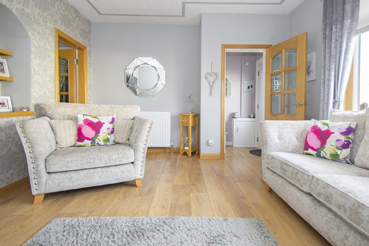 The home further benefits from an easily maintained hard landscaped garden to the front, with a mono-bloc driveway providing off-street parking. Enclosed rear garden with lawn area, raised patio and garden shed.