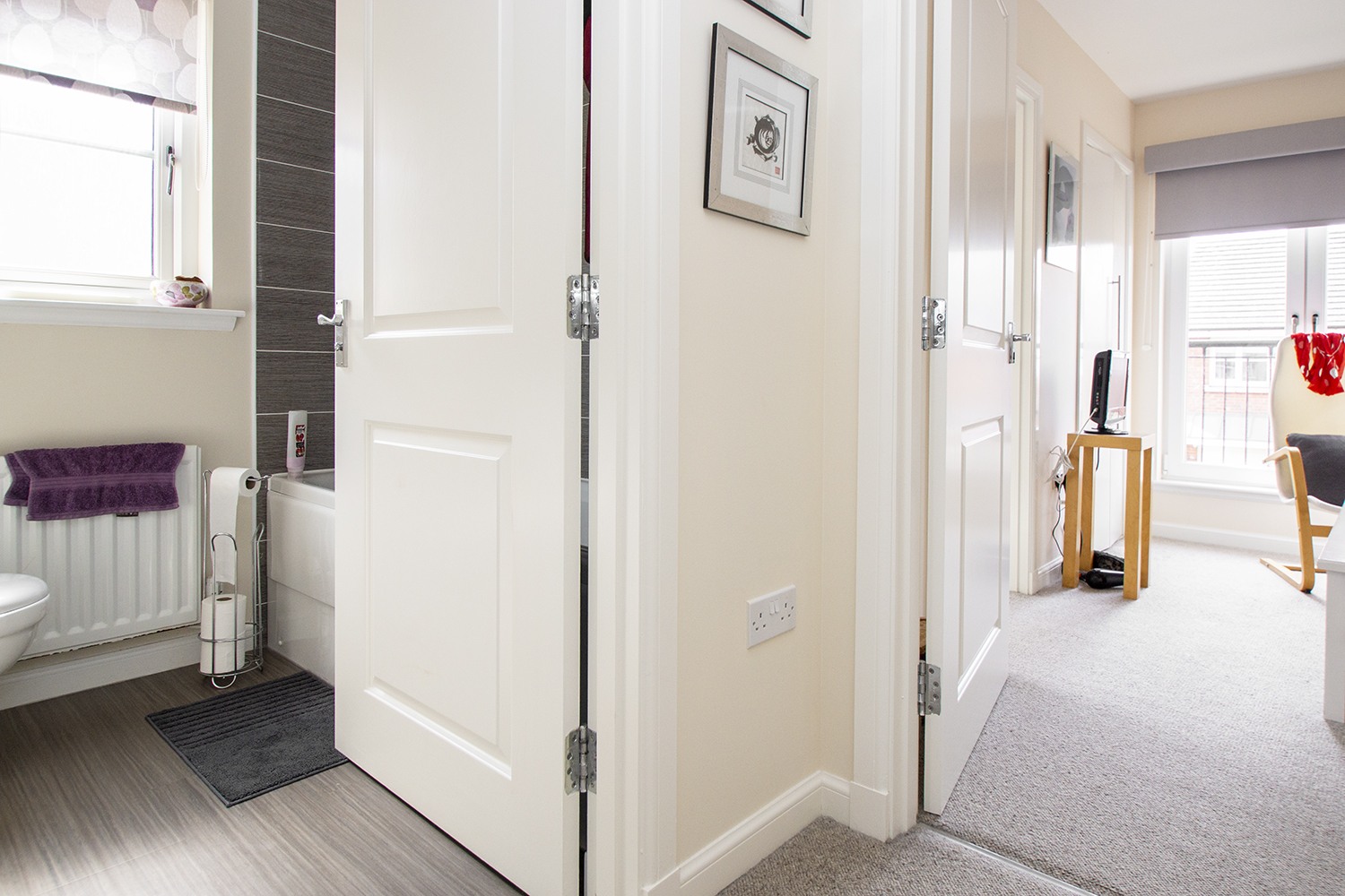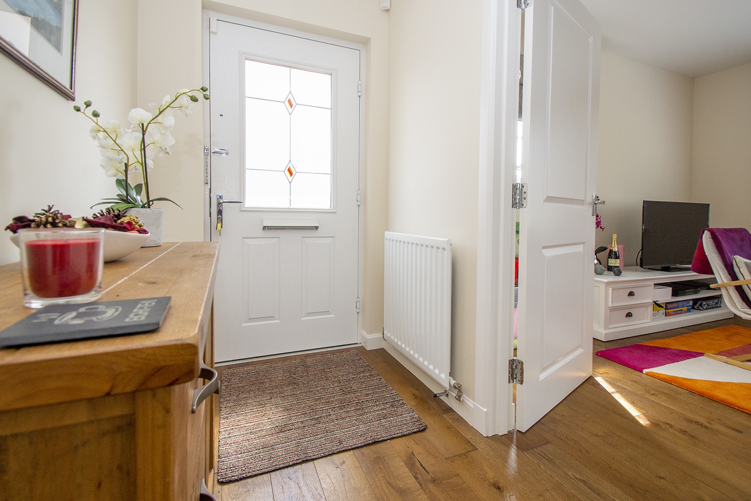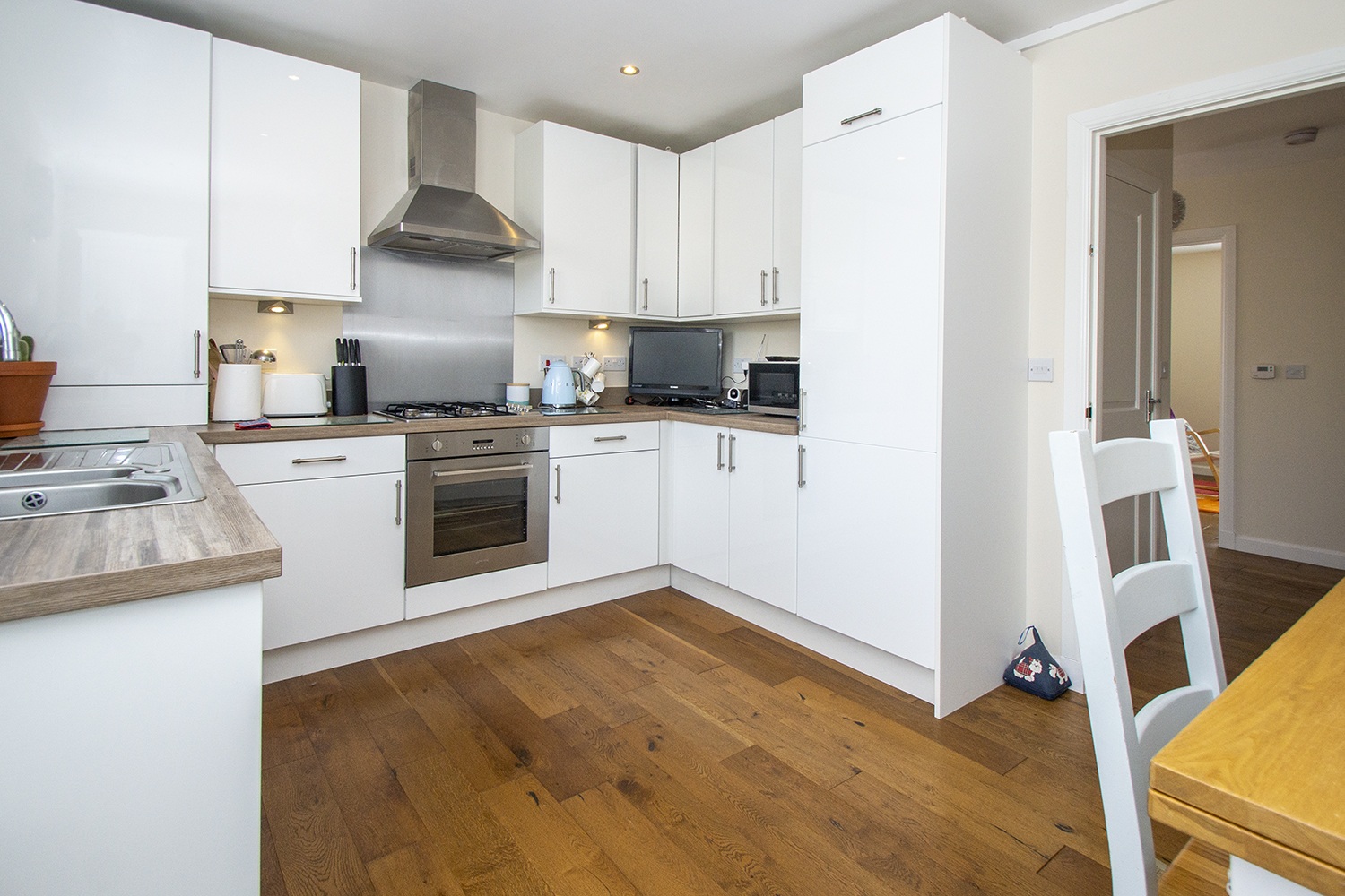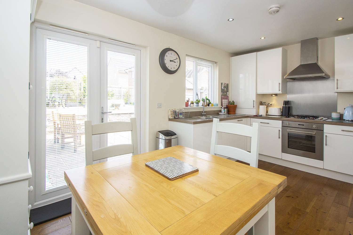 The family home is well-presented throughout and is formed over two levels with the lower level comprising welcoming entrance hallway, spacious lounge with front and side facing windows which allow an abundance of natural light to flow through. Two-piece cloakroom. Rear facing dining kitchen which houses an ample range of base and wall units with complementary worktops and upstands, a range of integrated appliances and French doors opening to the rear garden. The upper-level accommodation houses the master bedroom with en-suite and large windows opening to the balcony, a further two bedroom one of which has built in wardrobes. Three-piece family bathroom comprising bath and vanity unit which houses the wc and wash hand basin.
