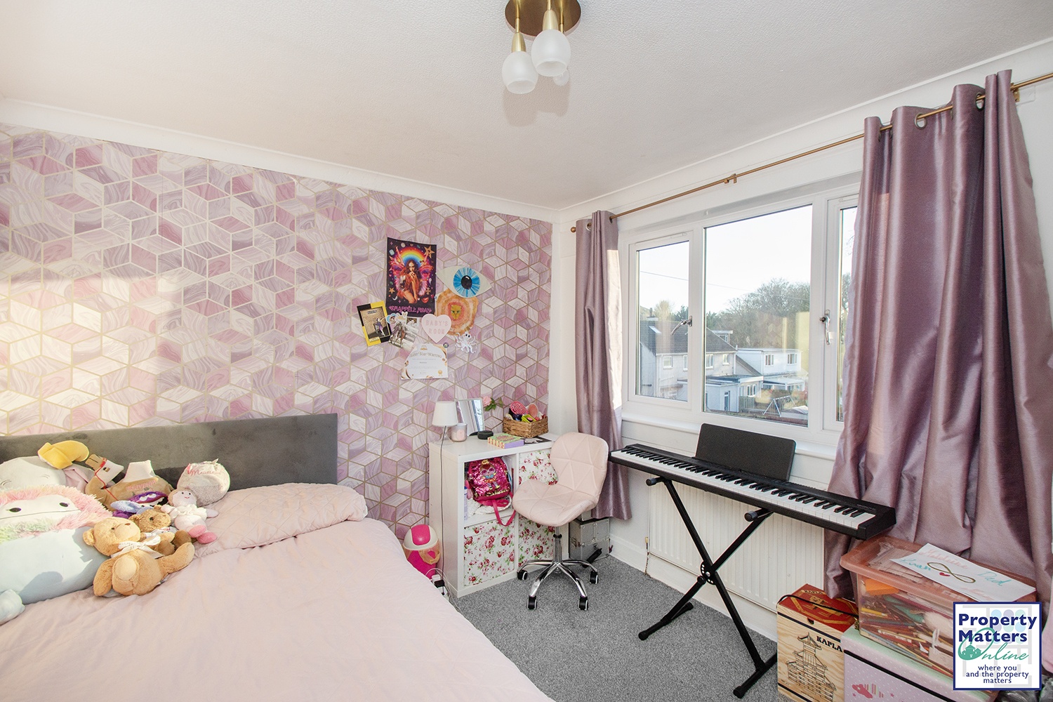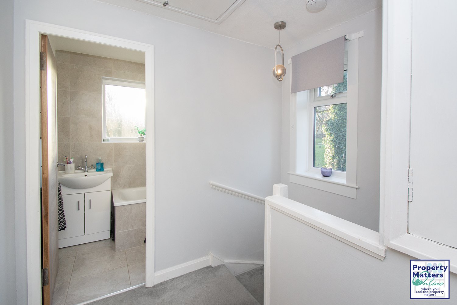 The first floor comprises three well-proportioned bedrooms and a contemporary bathroom featuring a three-piece suite, overhead shower, and elegant ceramic tiling.