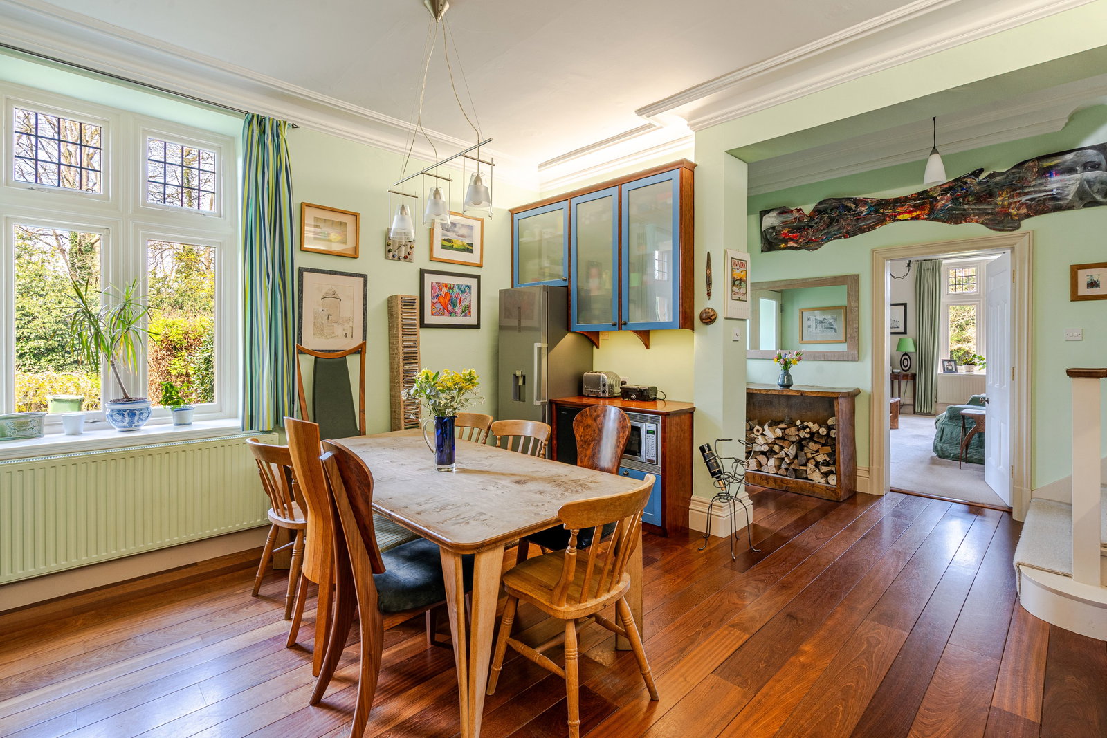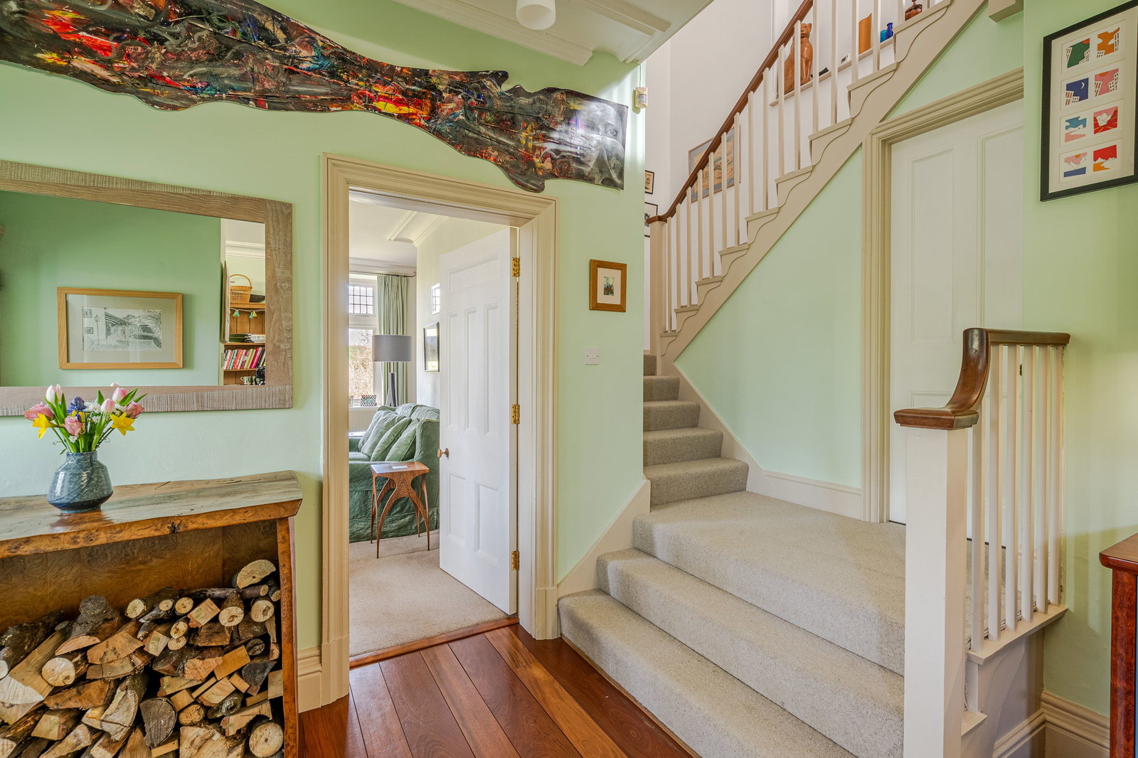 On the ground floor, an entrance hall leads to a high-quality, custom-built kitchen/dining room. The formal drawing room offers a double aspect and includes a charming stone fireplace with an inset wood-burning stove. A second reception room provides a comfortable snug, off which there is a practical utility room and a boot/boiler room. A grand staircase rises to the first floor landing and there is a downstairs WC beneath. On the first floor there are four generously sized bedrooms and a family bathroom. The principal bedroom suite enjoys delightful views over the gardens and benefits from an en-suite bathroom and a walk-in wardrobe.