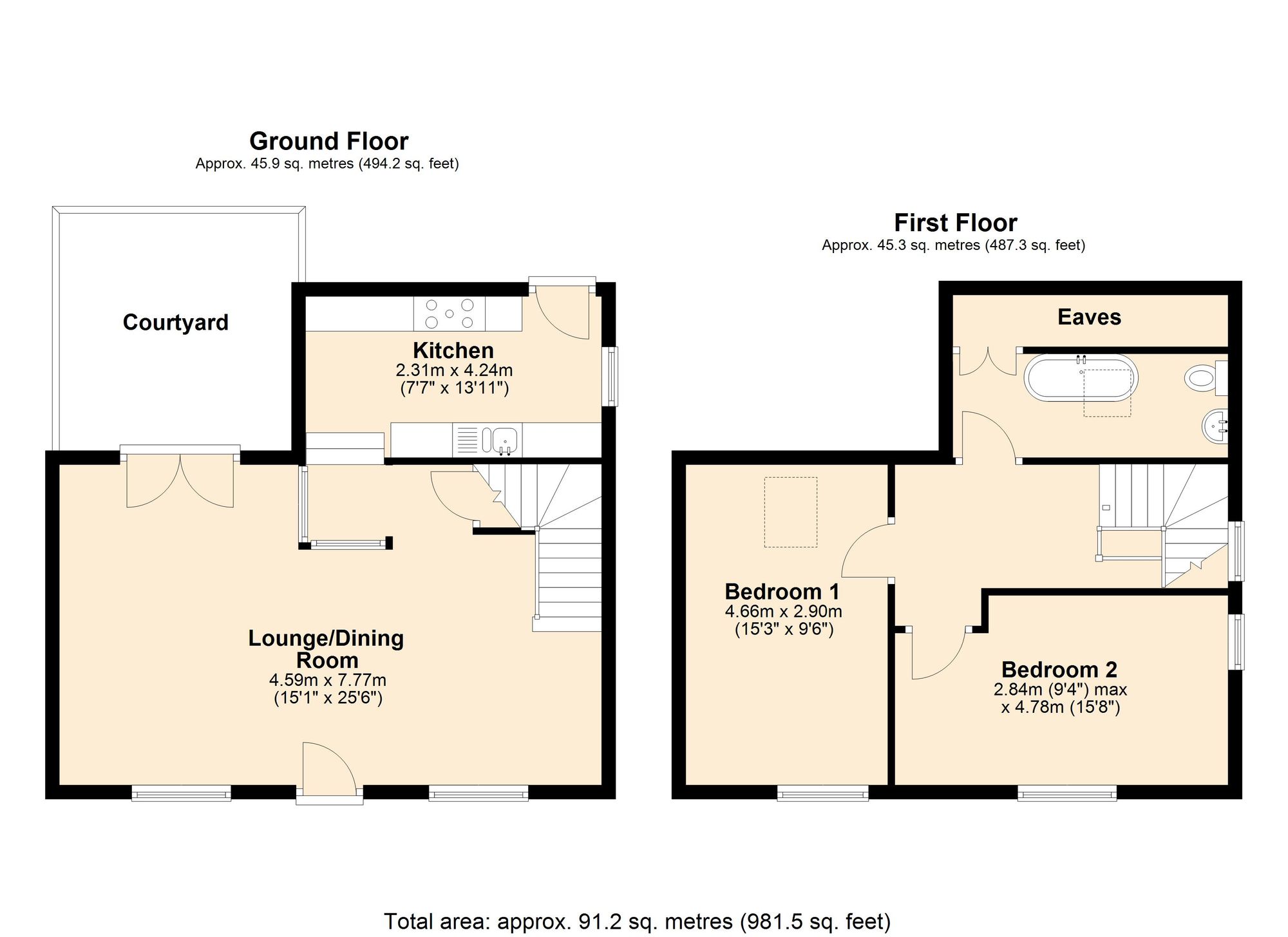 The beautifully presented accommodation includes a bespoke kitchen and a spacious open-plan lounge dining room with lofty beamed ceiling and access via French doors to the rear courtyard. This light and airy reception room has a wonderful charm to it with window seats and oak staircase leading to the first floor landing where you’ll find two characterful bedrooms and bathroom.