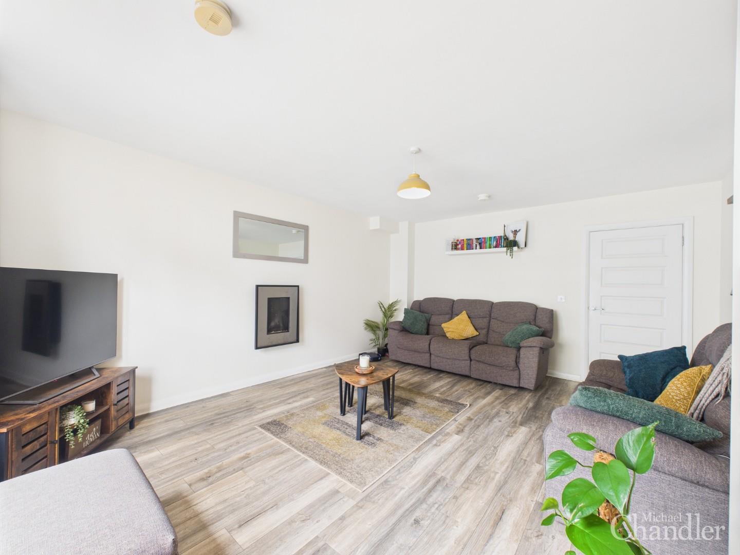 Spacious lounge with wood effect floor and a feature electric fire