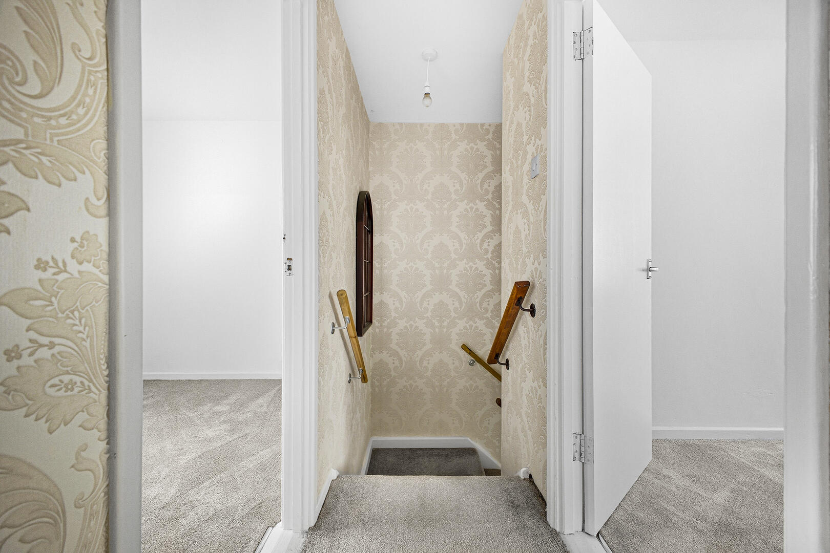 Back Hallway - Porcelain tiled floor, excellent storage cupboard with shelving, uPVC door with double glazed frosted inset, access to electrics