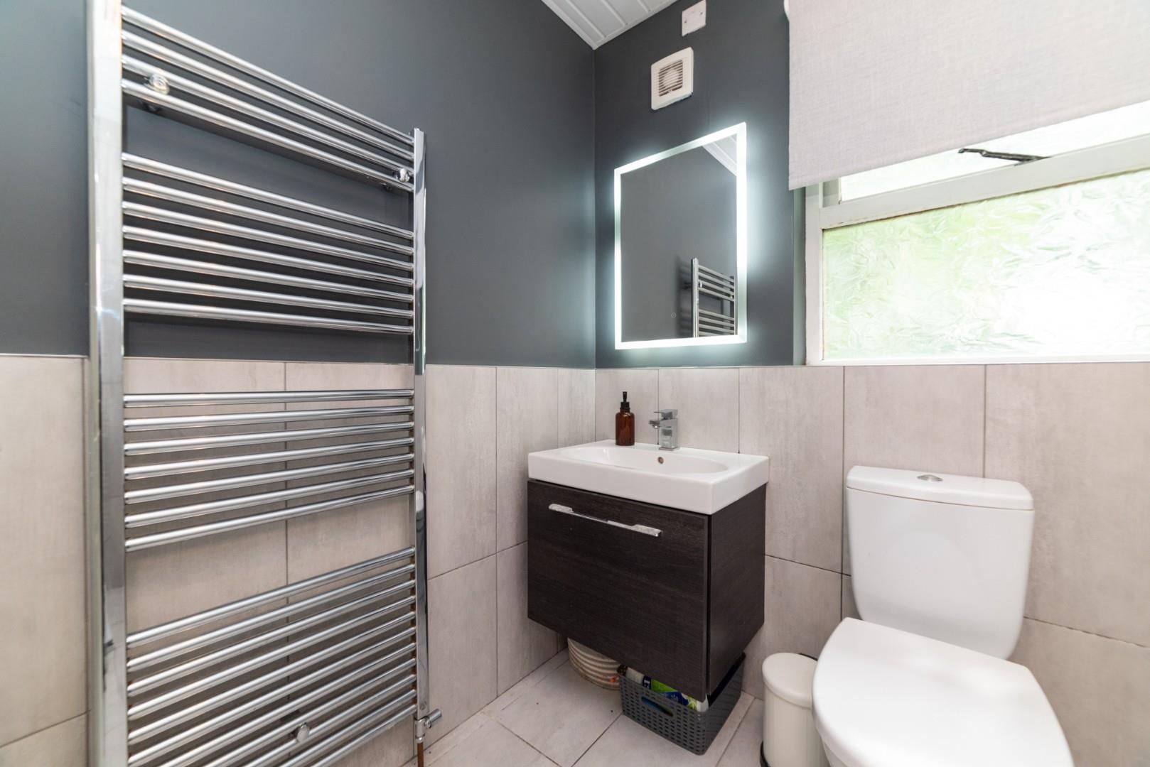 Large family shower room with a modern white suite plus a ground floor cloakroom/wc