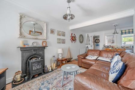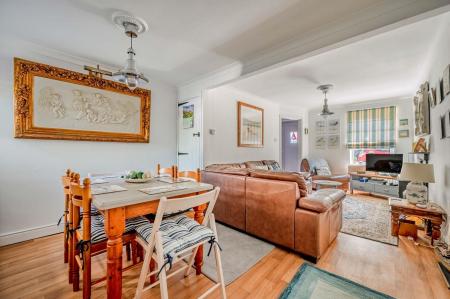 Open Plan Living And Dining Area - (6.54m x 3.64m) - Laminate wood effect floor with feature open fire place and extended dinning space