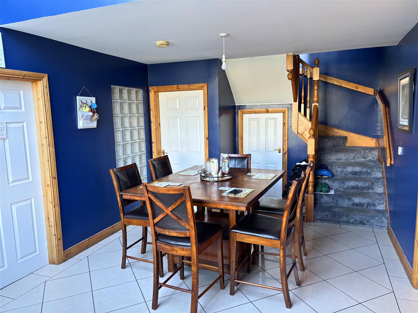 Entrance/Dining Hall: - 5.4 x 3.5 (17'8" x 11'5") - with telephone point, under-stair storage, feature block wall to kitchen, feature floor to ceiling windows, tiled flooring.