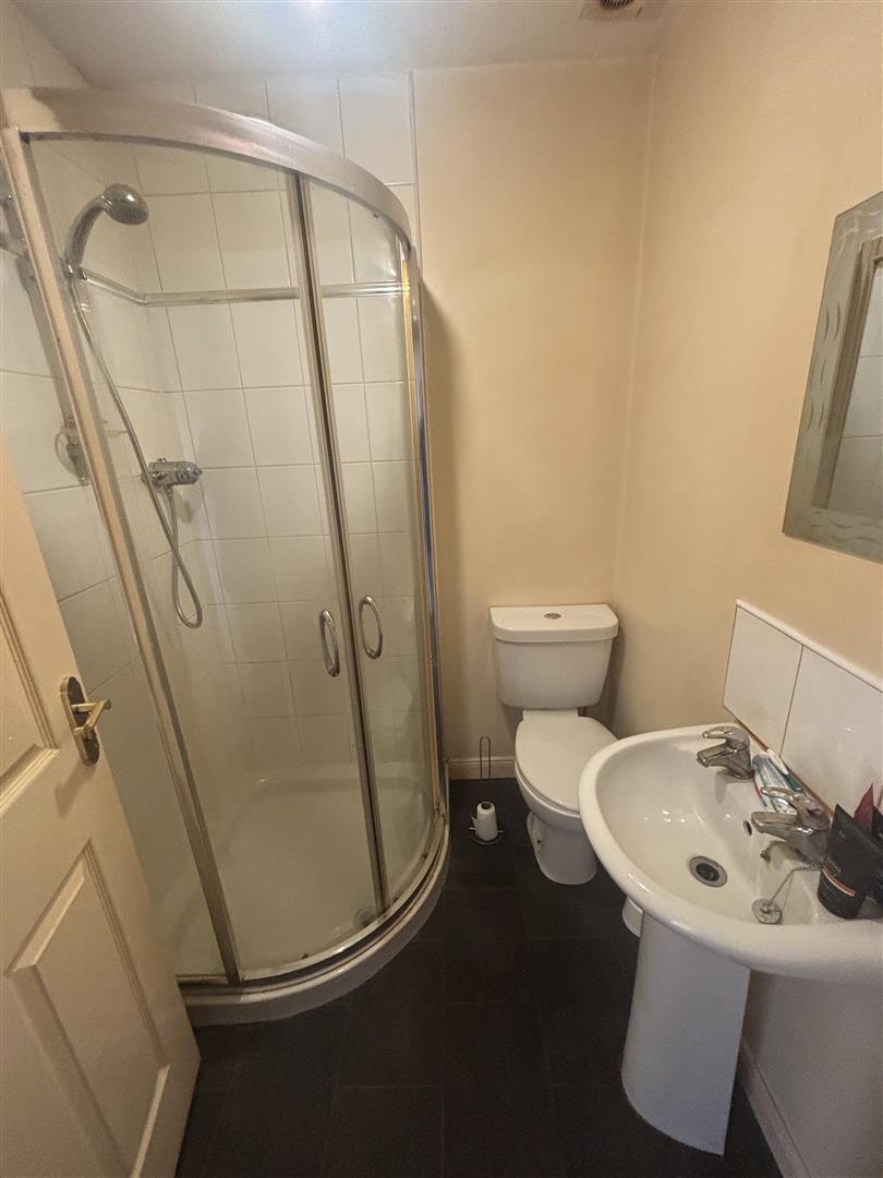 Bathroom: - 2.26m x 1.83m (7'5 x 6'0) - with three piece suite comprising of fitted bath with electric shower over-head and shower screen, pedestal wash hand basin, low flush w.c. Also having extractor fan, tiled around bath, tiled floor.