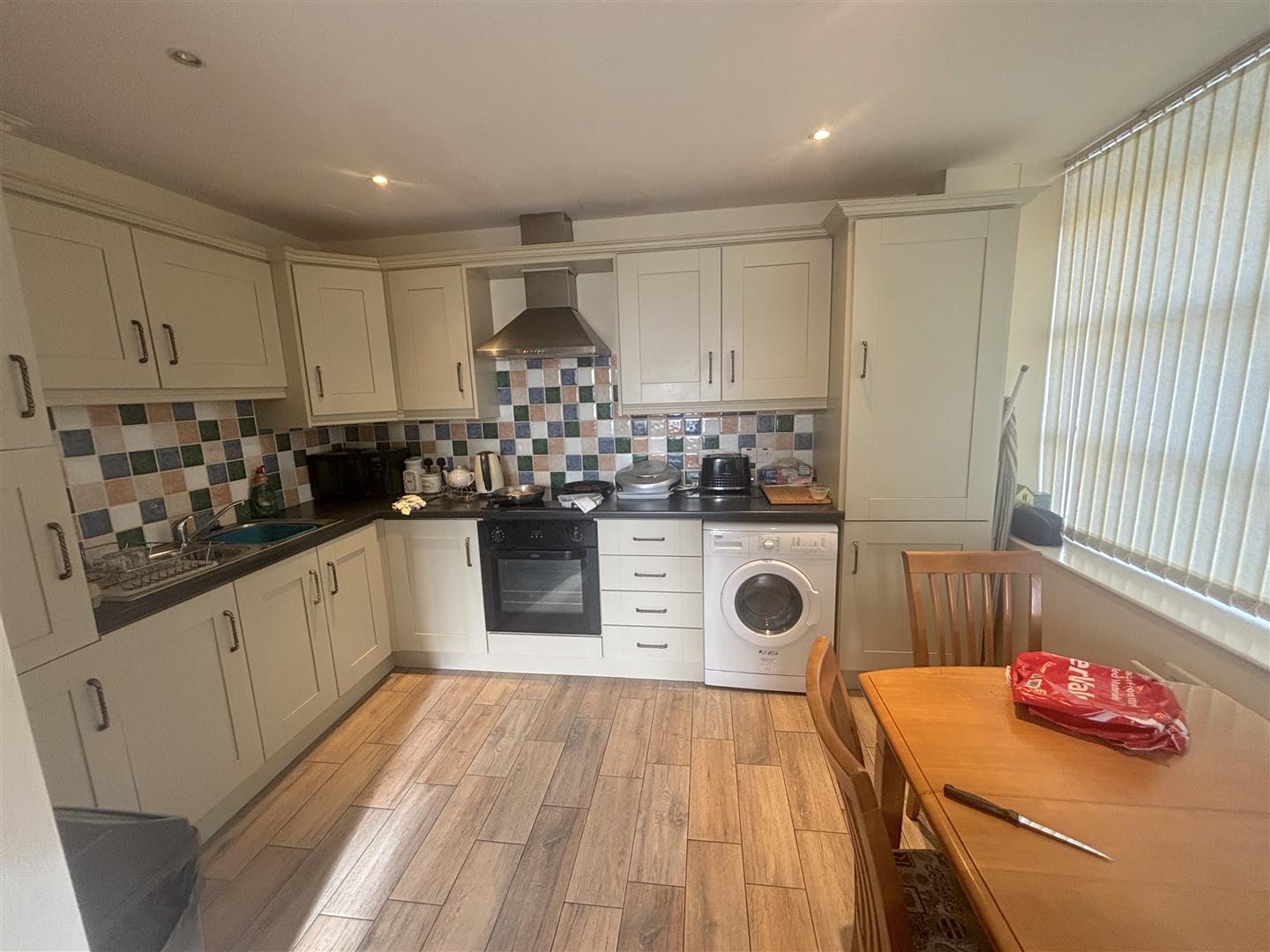 Kitchen-Dining: - 5.84m x 4.22m (19'2 x 13'10) - with a range of eye and low level units, matching worktop, tiled around units, stainless steel sink unit, built-in hob and oven, stainless steel extractor fan with light, integrated fridge/freezer, recess low voltage down-lighters, cushion flooring.