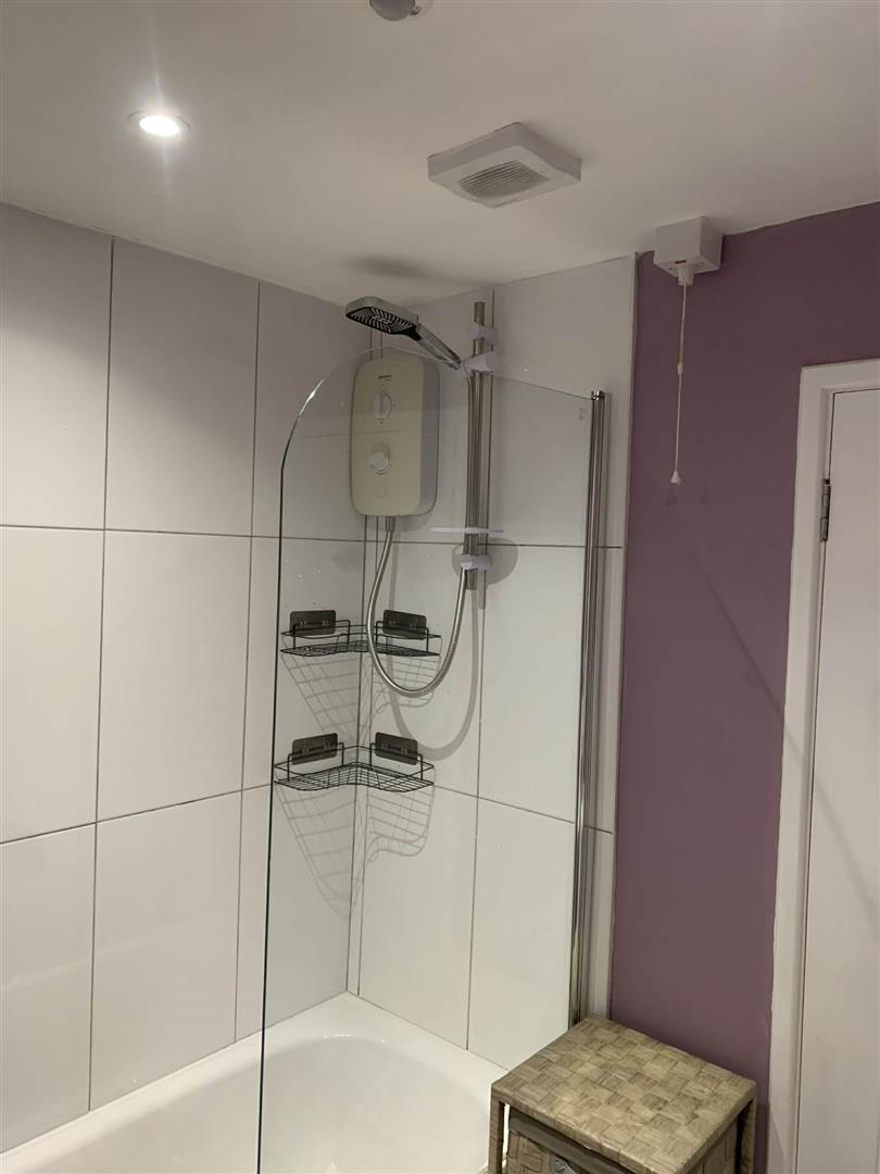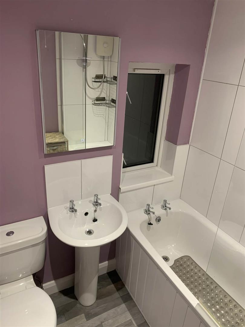 Bathroom: - Fitted white bath with electric shower over bath. Pedestal wash hand basin. Low Flush W.C. Extractor fan. Cushion flooring. Part tiled walls.