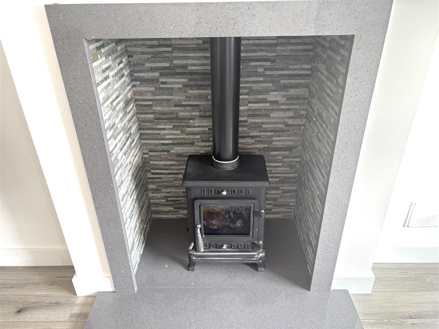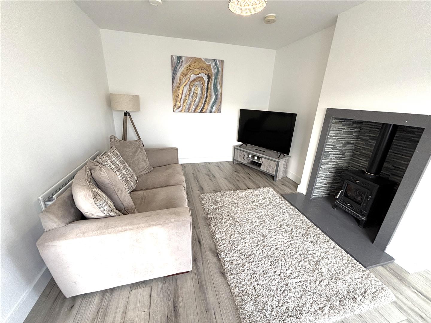Lounge: - 4.7 x 3.3 (15'5" x 10'9") - Fitted with a wood burning stove with tiled inset and tiled hearth. Laminate flooring. Bay window.