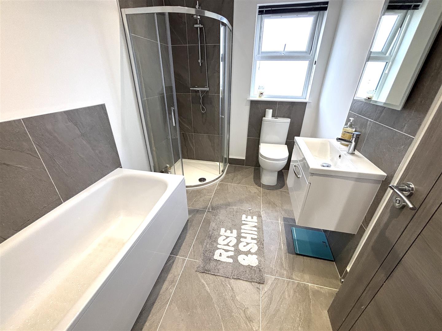 En-Suite: - 2.3 x 1.1 (7'6" x 3'7") - Fully tiled shower cubicle with thermostatic shower. Low Flush W.C. Wall mounted wash hand basin. Extractor fan. Chrome heated towel rail. Laminate flooring.
