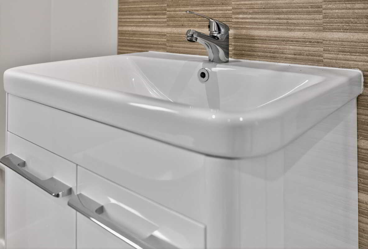 Contemporary white sanitary ware with chrome fittings