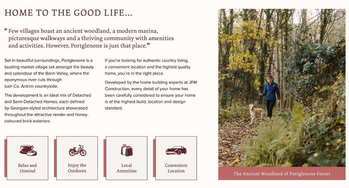 Few villages boast an ancient woodland, a modern marina, picturesque walkways and a thriving community with amenities and activities. However, Portglenone is just that place.
