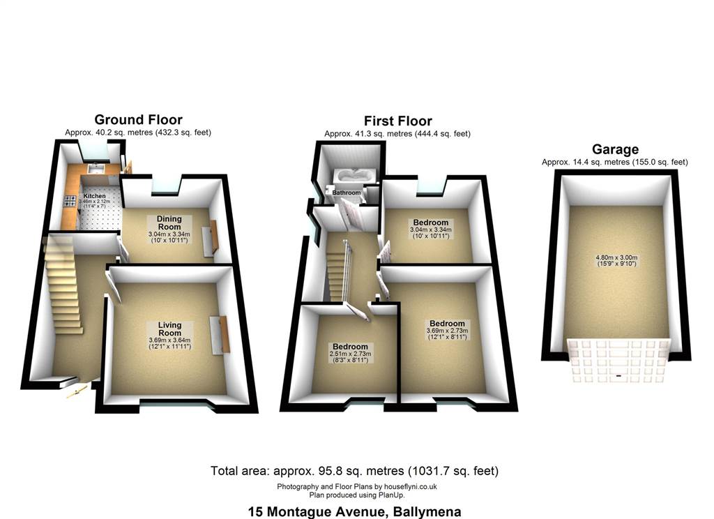 - Three bedrooms