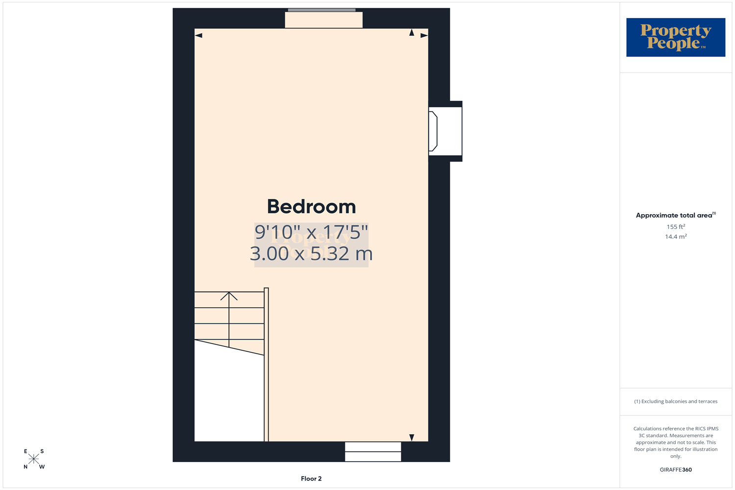 Bedroom 2 5.32m (17'5) x 3m (9'10)