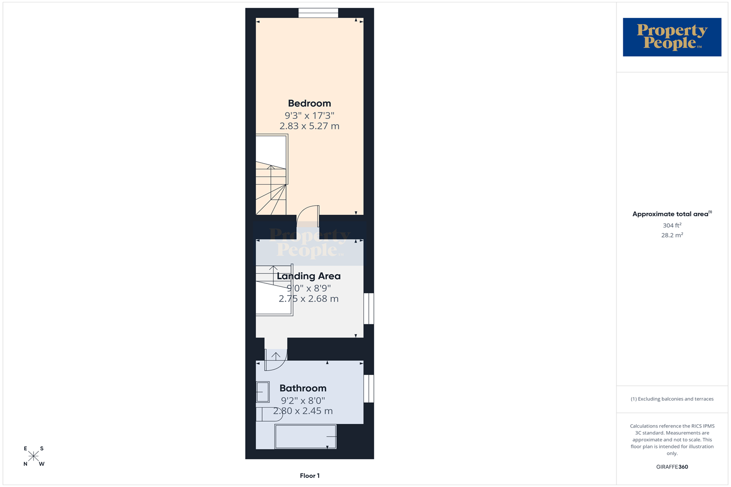 Landing Area 2.68m (8'10) x 2.75m (9'0)