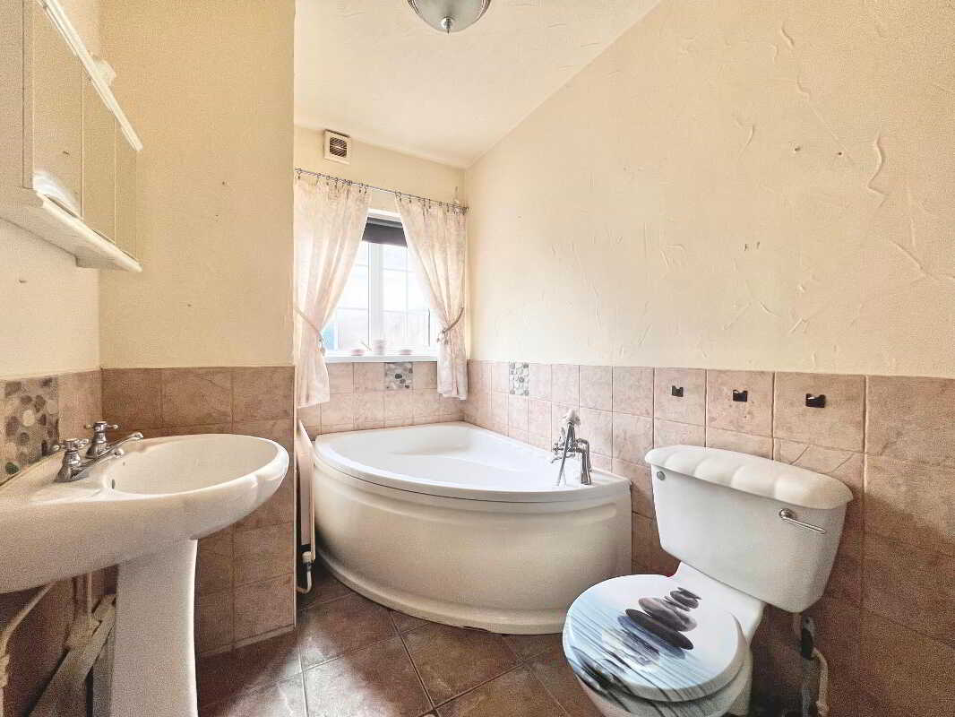 Entrance HallwayWith laminate wood floor.Living RoomWith feature fireplace, laminate wood floor, tv point.Kitchen & DiningWith eye & low level units, stainless steel sink & drainer unit, electric hob & oven, extractor fan, walls and floor fully tiled.BathroomWith wc, whb, corner bath & separate electric shower, walls part tiled, floor fully tiled.Bedroom 1With wood floor & storage cupboard.Bedroom 2With wood floor, tv point.Bedroom 3With wood floor.Store to RearPlumbed for washing machine, oil burner housed in store.