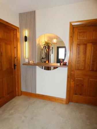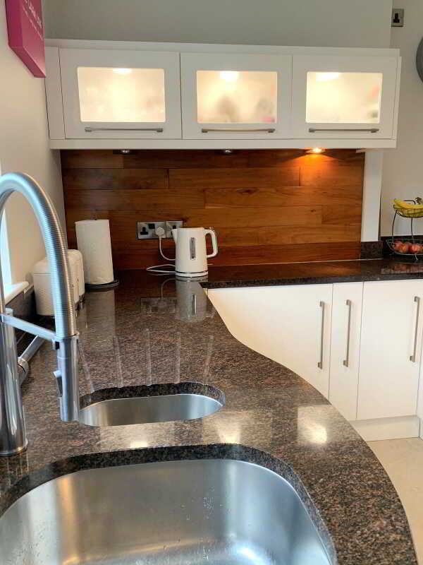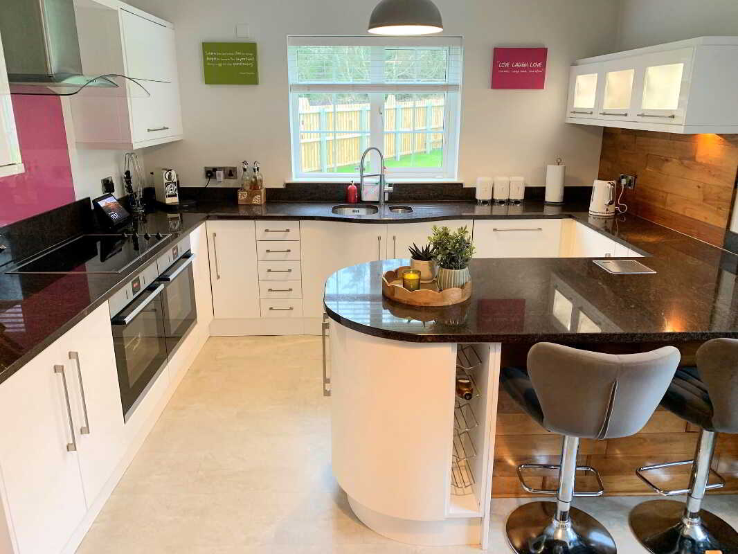 - With feature panelling and curved low level units.