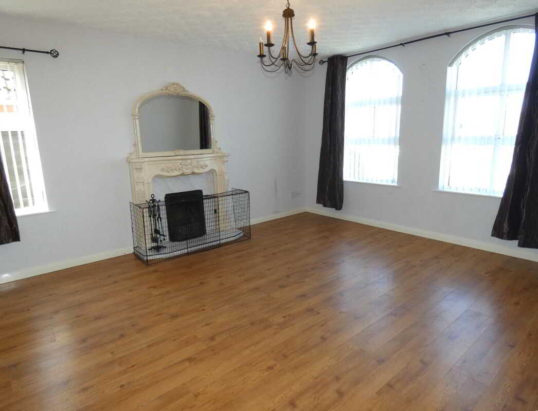- And a spacious double aspect living room with feature arch top windows to the front.