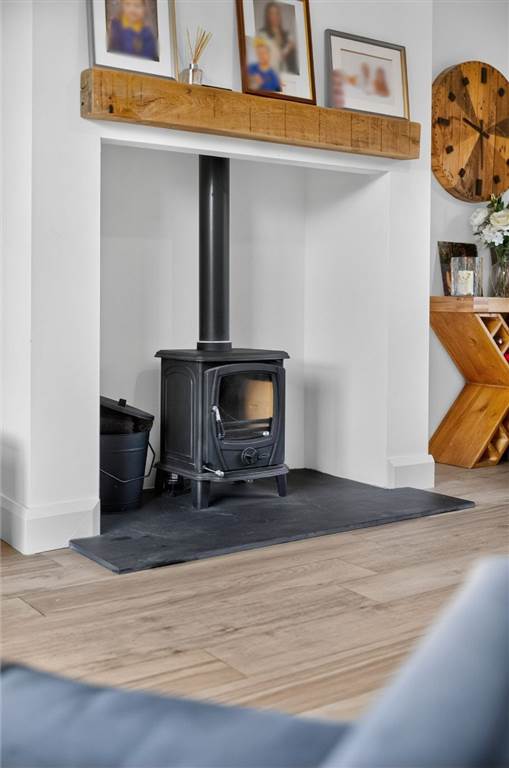 - Living room with multi-fuel burning stove