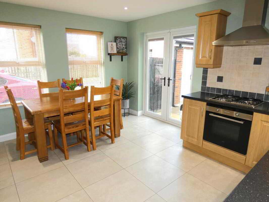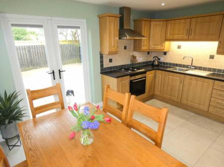 - And a feature double aspect kitchen with a generous range of units, feature tiling and french doors to the private landscaped rear garden.