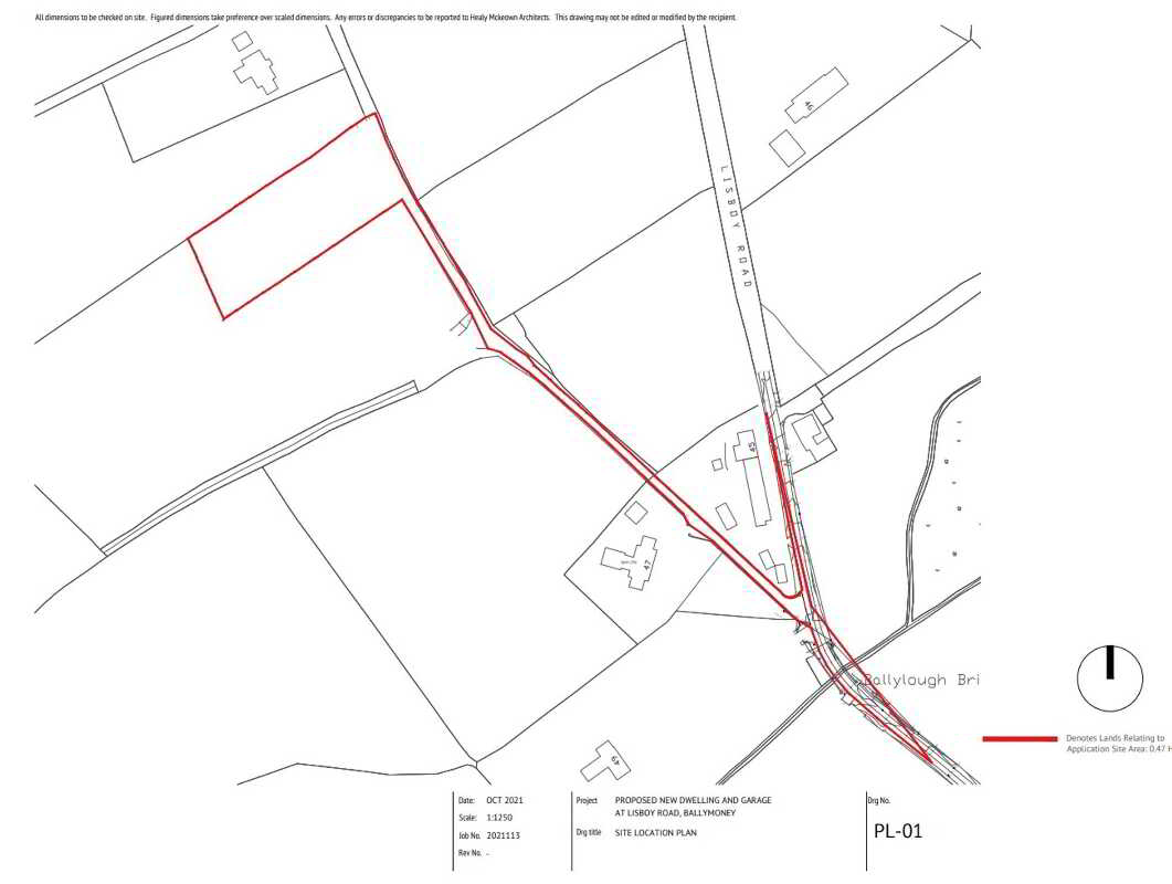We are delighted to offer for sale this superb rural building site located just off the Lisboy Road in this popular location approximately 4 miles from Ballymoney. The site circa 0.7 acres has full planning permission for a contemporary well designed 2 storey dwelling with a double garage on this elevated site in its picturesque setting. The site has been cleared and has a consent to discharge with drainage to water-course already laid. In addition the site has a water connection to the lane.
