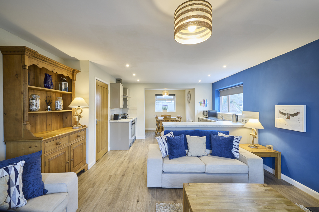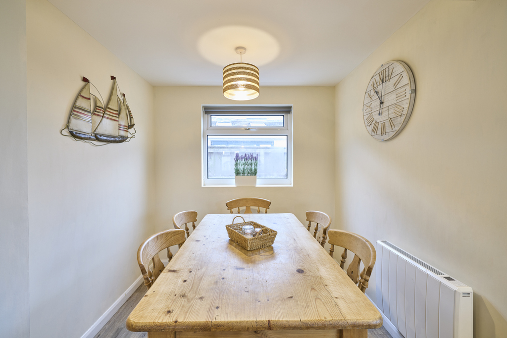 The garden is low maintenance and secure to allow children and family pets to play safely. The mature evergreen bushes and shrubs add attraction to this lovely outside space which captures a beautiful open countryside vista: the ideal spot in which to relax and unwind after a day exploring this area of outstanding natural beauty.