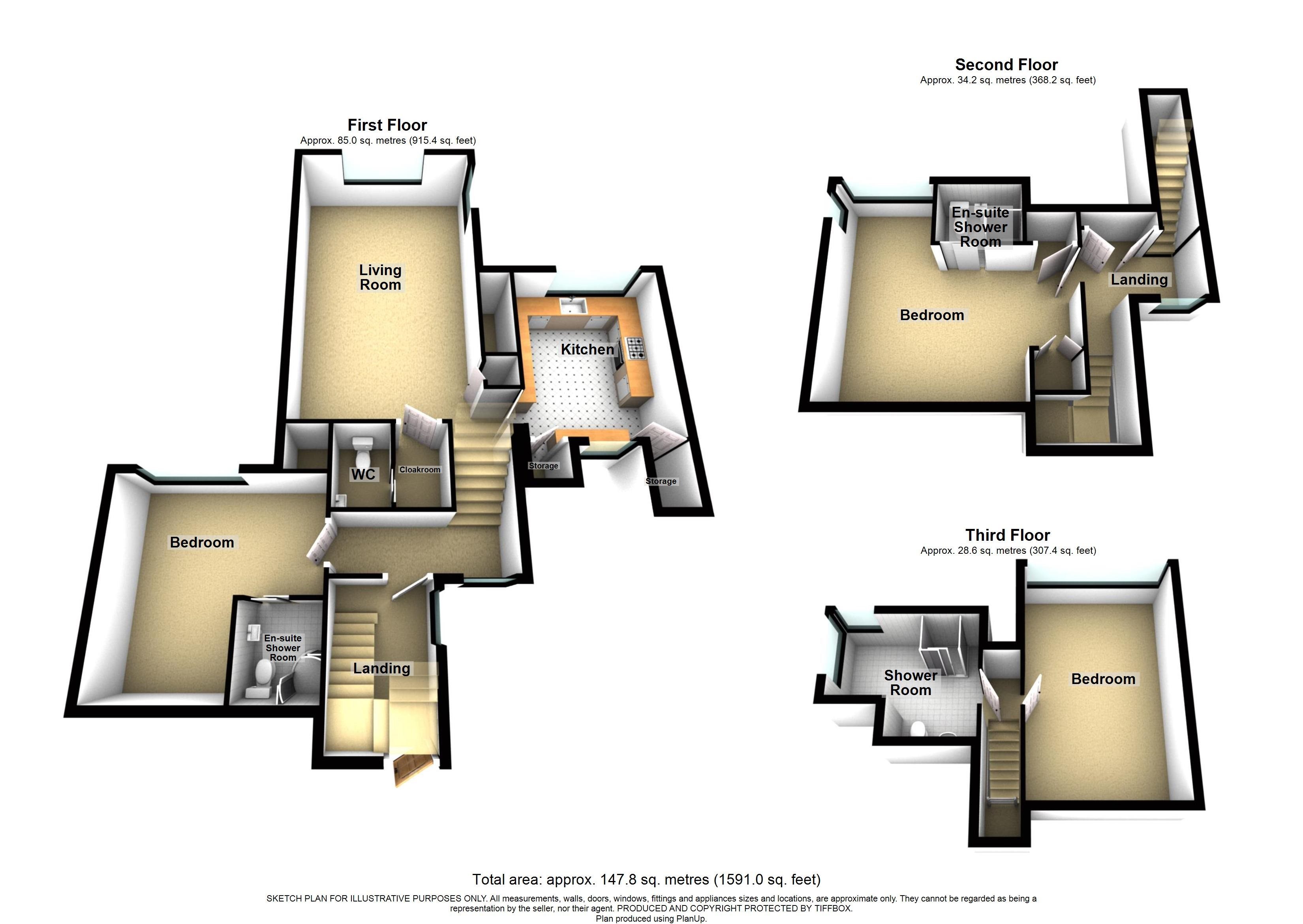 This exceptional three-bedroom split level apartment over 2 floors, comprises: Entrance via a communal reception hall featuring solid oak herringbone flooring and a unique stained-glass window. Entrance into the apartment with cloakroom/WC, an impressive open-plan living and dining area, and a contemporary kitchen fitted with new units and integrated appliances. An oak staircase leads to the mezzanine floor, which includes a utility room and offer's space for a study area. On the first floor, the master bedroom boasts outstanding views and an en-suite shower room, while the second bedroom also benefits from its own en-suite. A further staircase leads to the second floor, where you?ll find a third bedroom with an additional en-suite shower room.