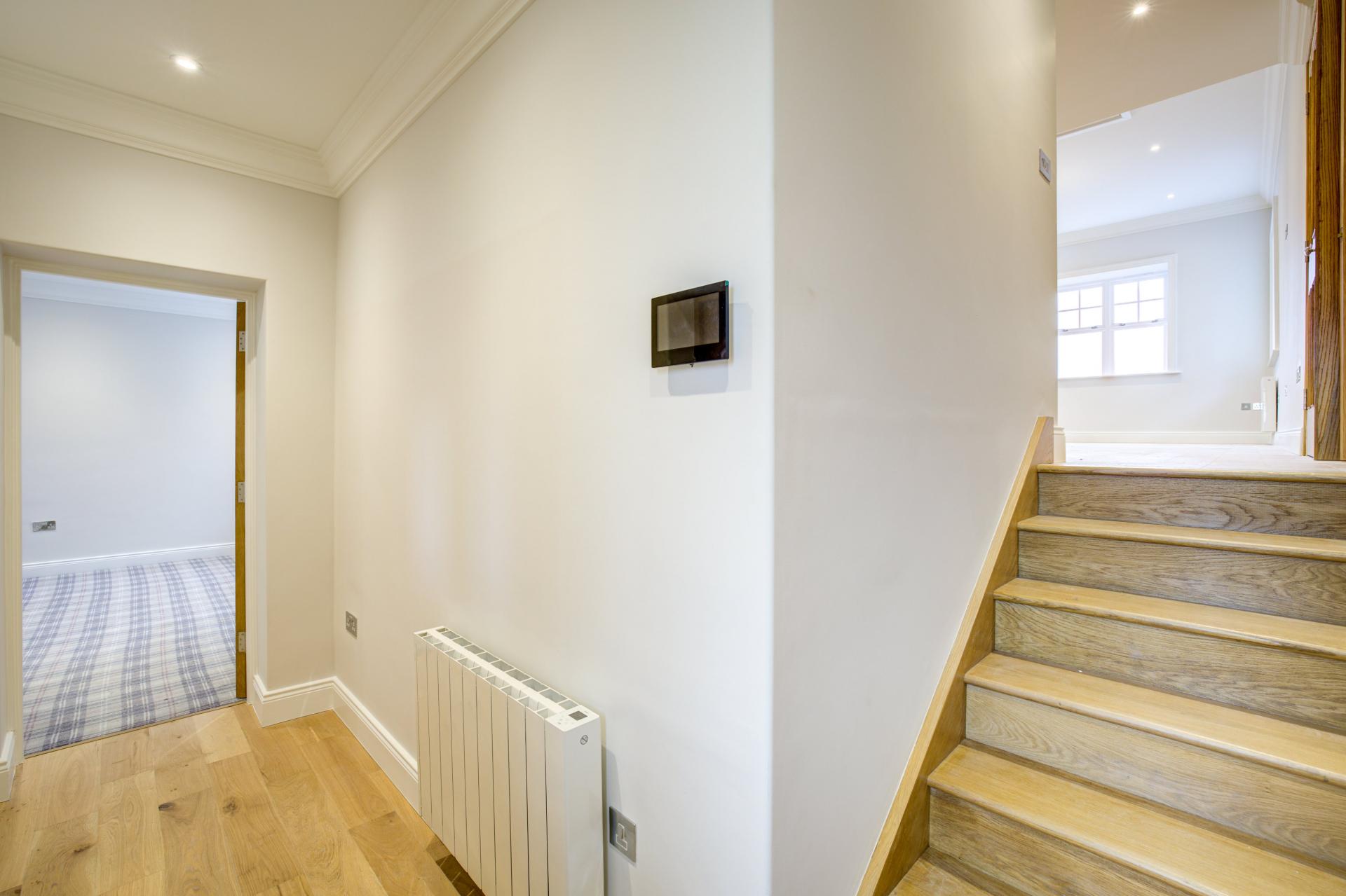 With cornicing, oak flooring, wall mounted video intercom system, wall mounted 'Rointe' electric thermostatic heater with bluetooth control. Stairs up to...