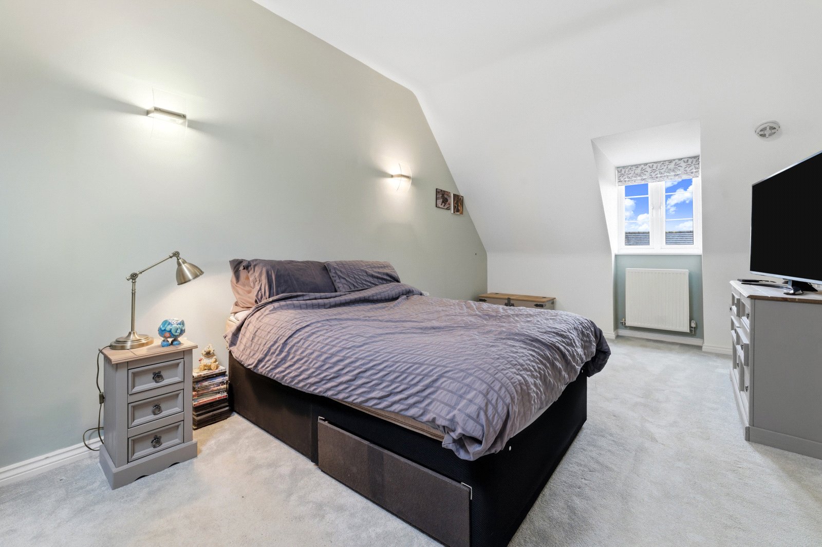 Master Bedroom: Double-glazed window to the front aspect and double-glazed Velux window to the rear aspect. Range of three double Sharps built-in wardrobes.