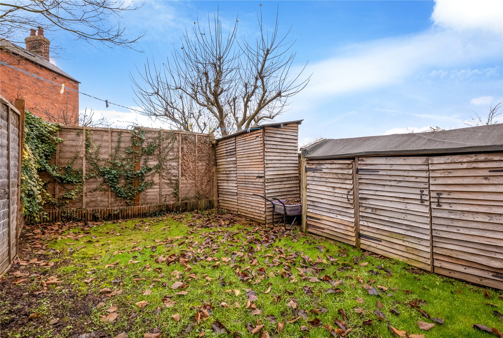 Rear Garden: Fully enclosed and not overlooked, laid with patio area with steps up to lawn, with flower and shrub beds, and a range of timber garden sheds.