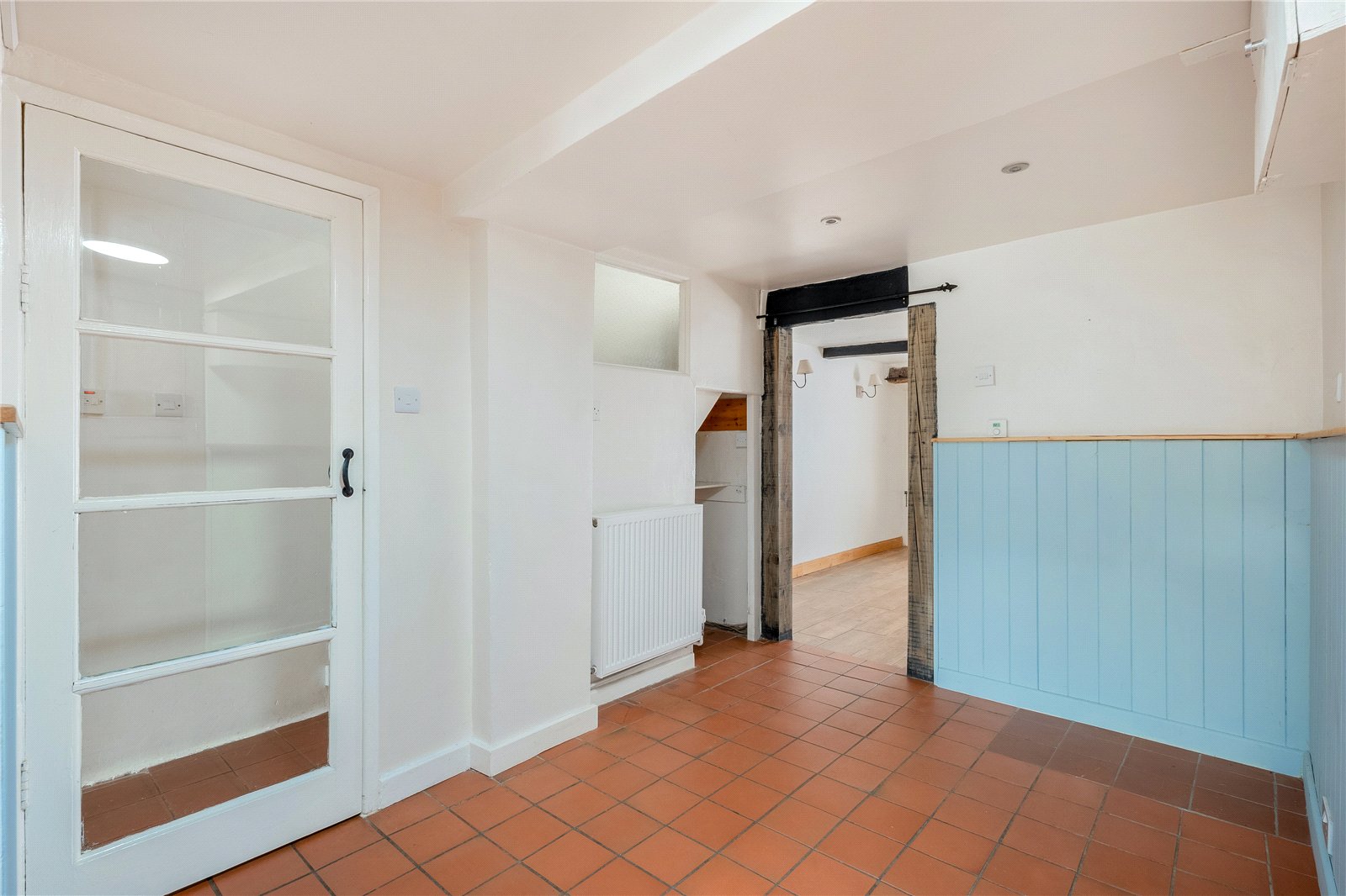 Kitchen/Dining Room: Fitted butlers sink with cupboard below. Range of wall-mounted and base units with worksurfaces. Space for electric cooker with extractor hood above. Space for fridge and freezer. Exposed stone wall, tiled floor, understairs cupboard, window and door to rear garden.