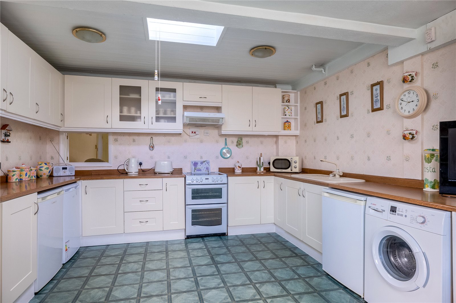 Large open plan kitchen dining room. Tile effect flooring. Velux window in the kitchen creating a light space. Door leading to rear garden from the dining room.