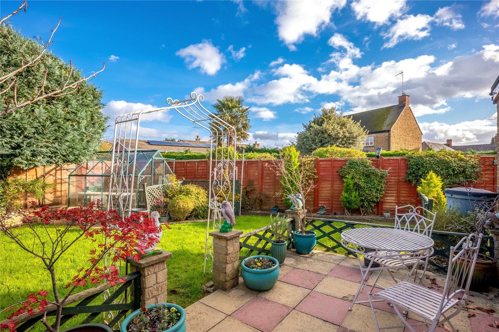 Mature rear garden offering privacy with hedging and tree along the boundary. Patio area located by dining room. Grass laid to turf. Raised flowerbeds. Greenhouse.