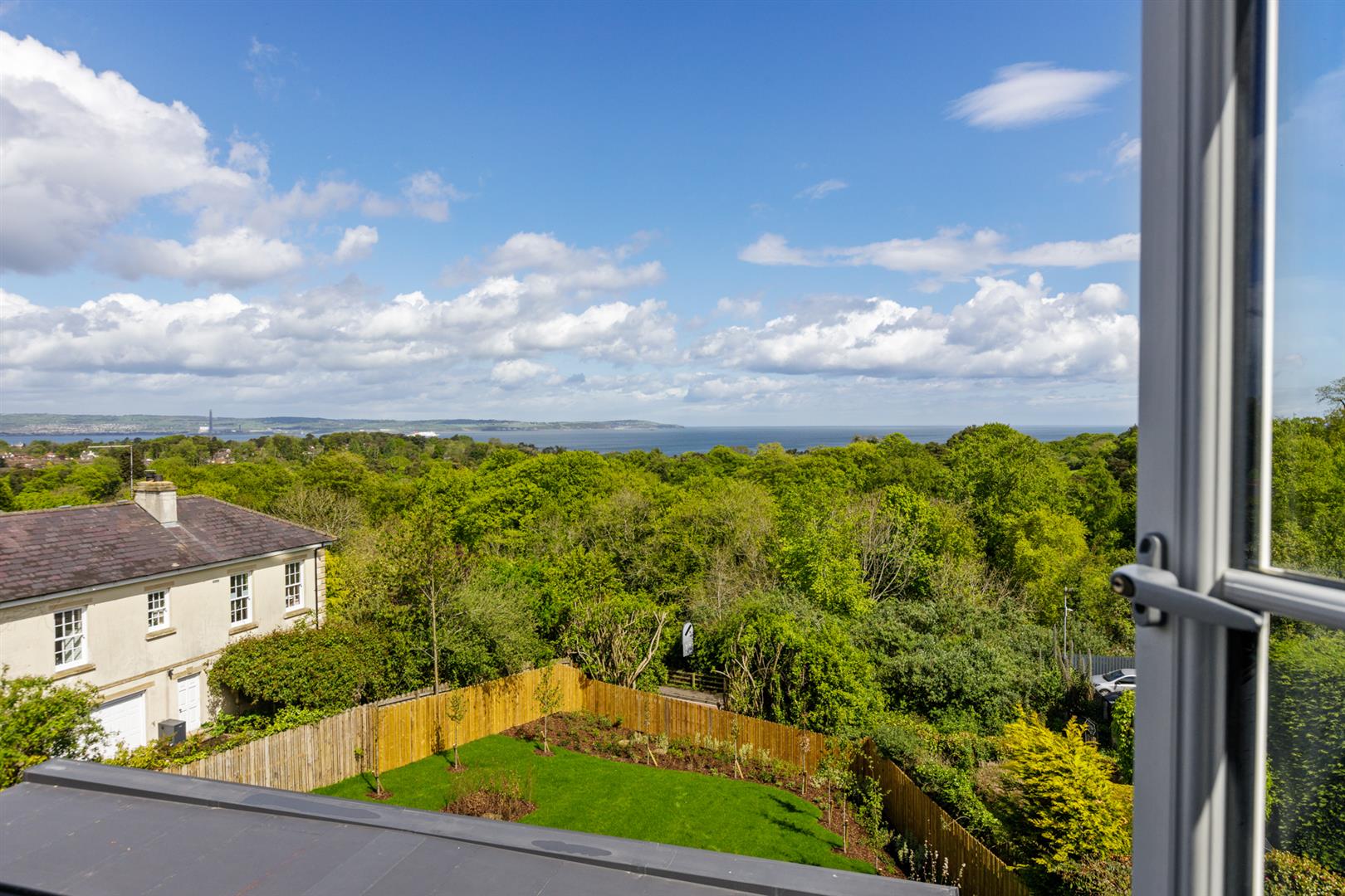 Bedroom (2): - (4.22m x 3.18m) - Spacious bedroom with access to eaves, breathtaking elevated outlook across Crawfordsburn Country Park and Helen's Bay across Belfast Lough to the Antrim Hills and coastline, mouth of Belfast Lough, the Irish Sea and Scotland beyond.