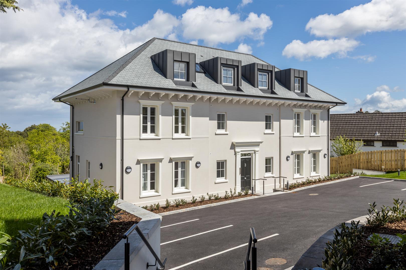 Communal grounds are laid in lawns with resident parking.