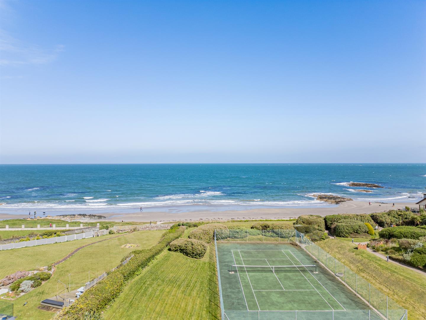 Picturesque views over the tennis court to Irish Sea.