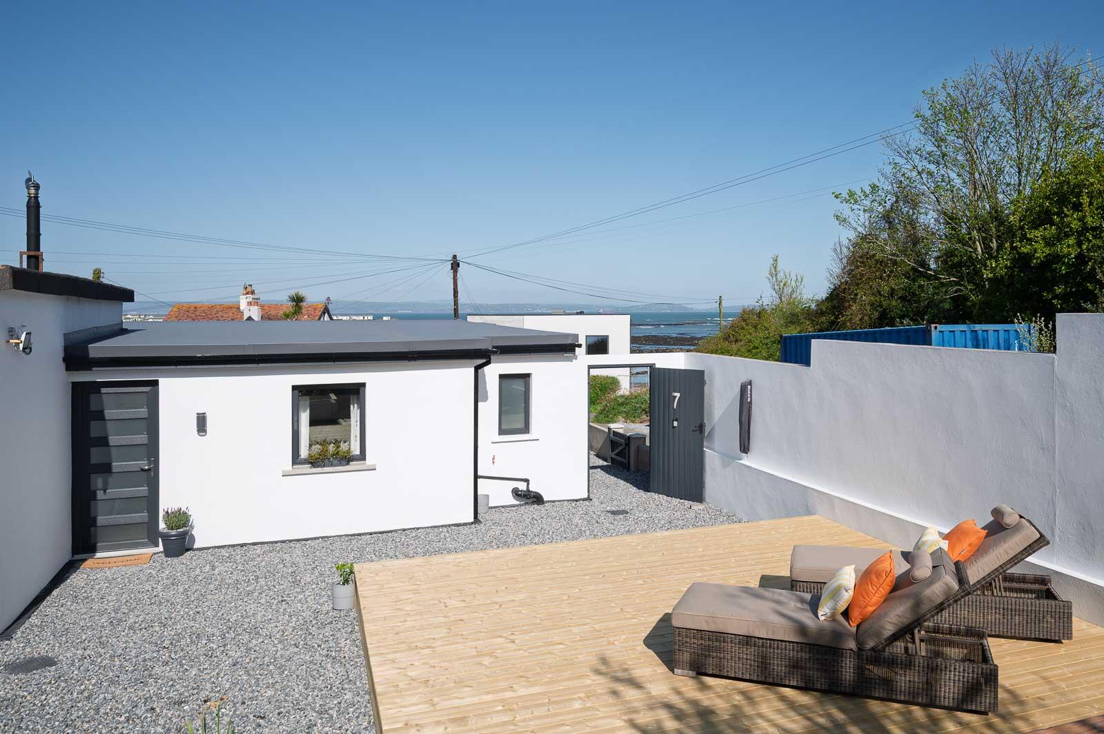 Externally, landscaped gardens include tiered decking and lawned areas designed to maximise privacy and views over Sandeel Bay. The setting offers both seclusion and convenience, with Donaghadee, Bangor, and Belfast all within easy reach.