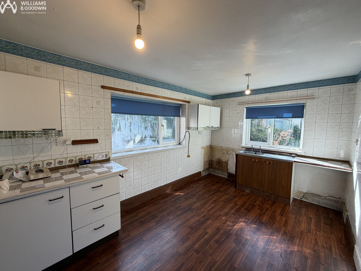 In need of renovation and modernisation, the property that's being sold with no onward chain is laid out to provide two ground floor reception rooms, a large kitchen, three sizeable bedrooms and a bathroom.