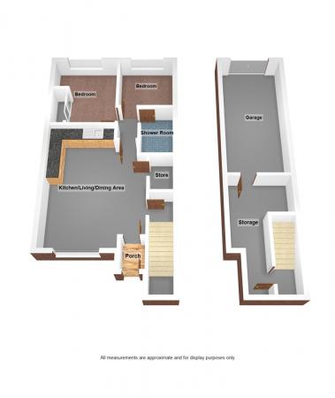The accommodation comprises open plan living room to kitchen, two bedrooms and a shower room with three piece suite. A set of stairs from the living room lead to a lower level which provides a store room and integral garage, with electric roller door, which can be accessed from the rear. Other benefits include Phoenix Gas heating, double glazed windows and communal resident and visitor parking to the rear. Outside you also have a front courtyard in brick paviour.