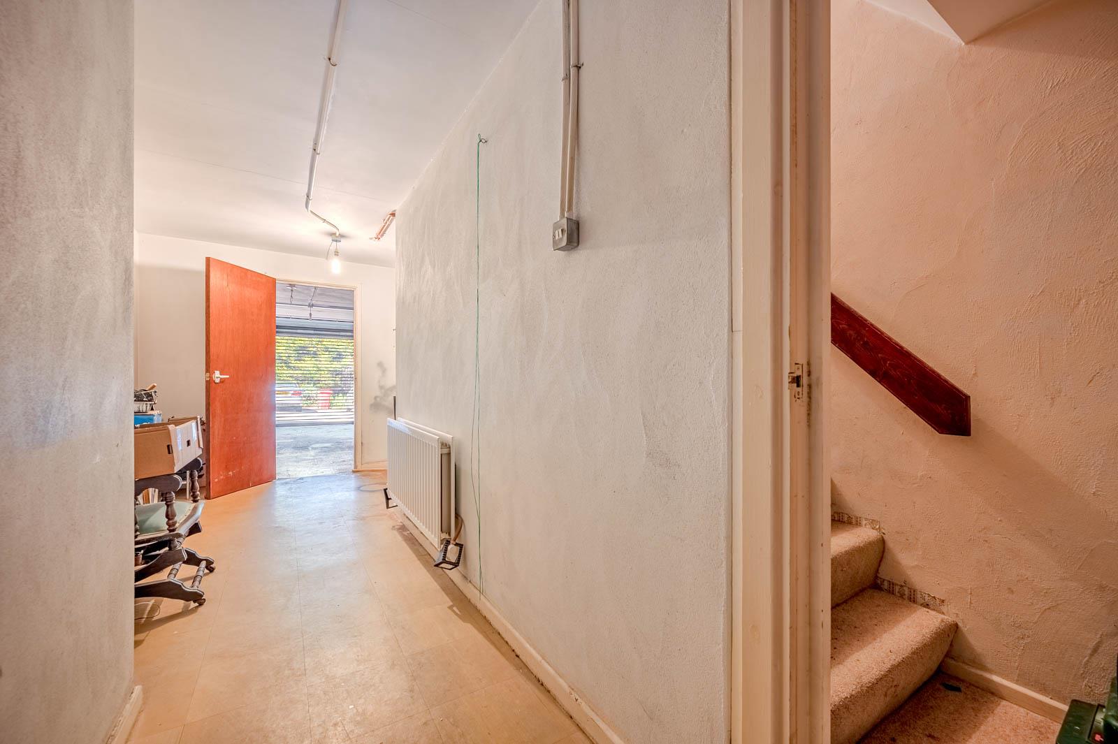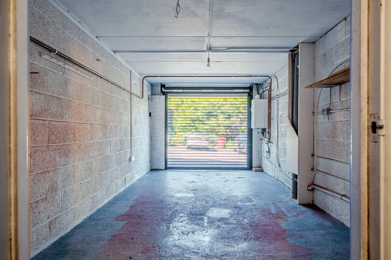 With remote control roller door, power and light, gas fired boiler with resident and visitor parking to rear.