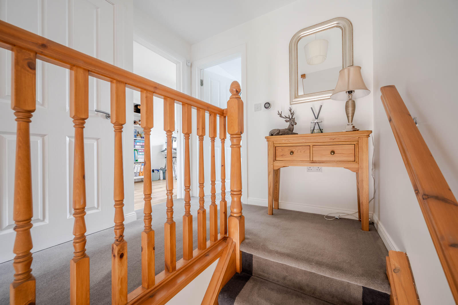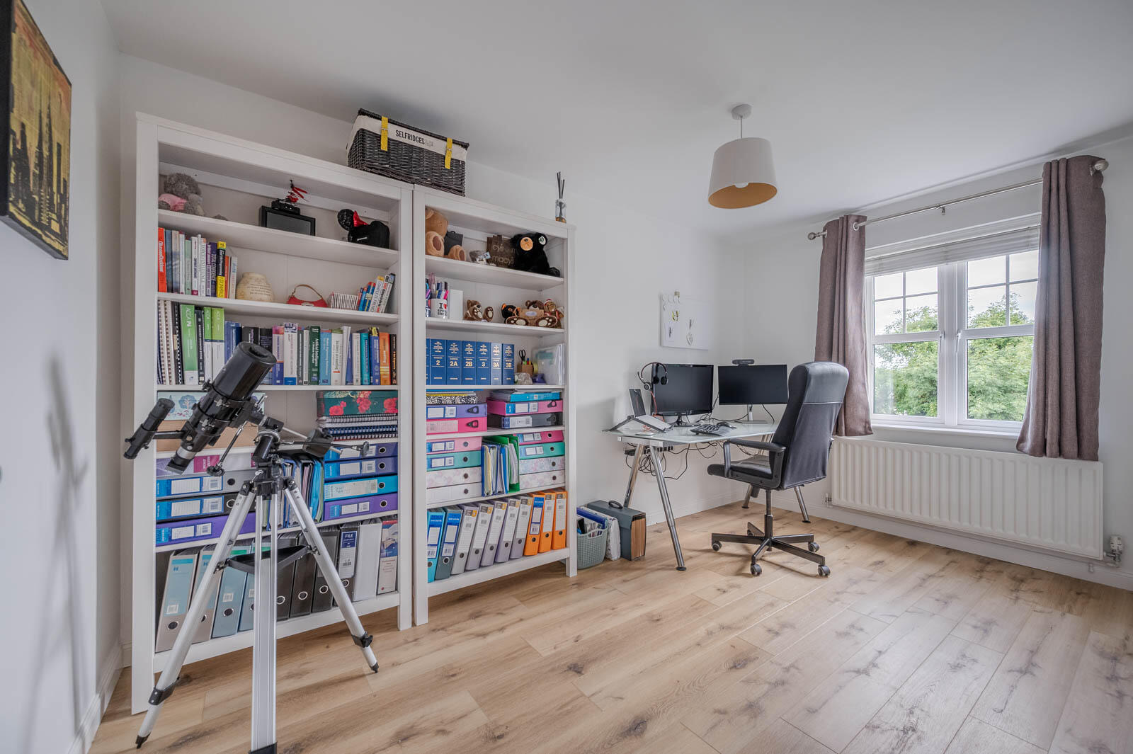 5.18m x 4.42m (17'0 x 14'6) - Oak laminate wooden flooring, mature outlook to front, excellent storage into eaves.